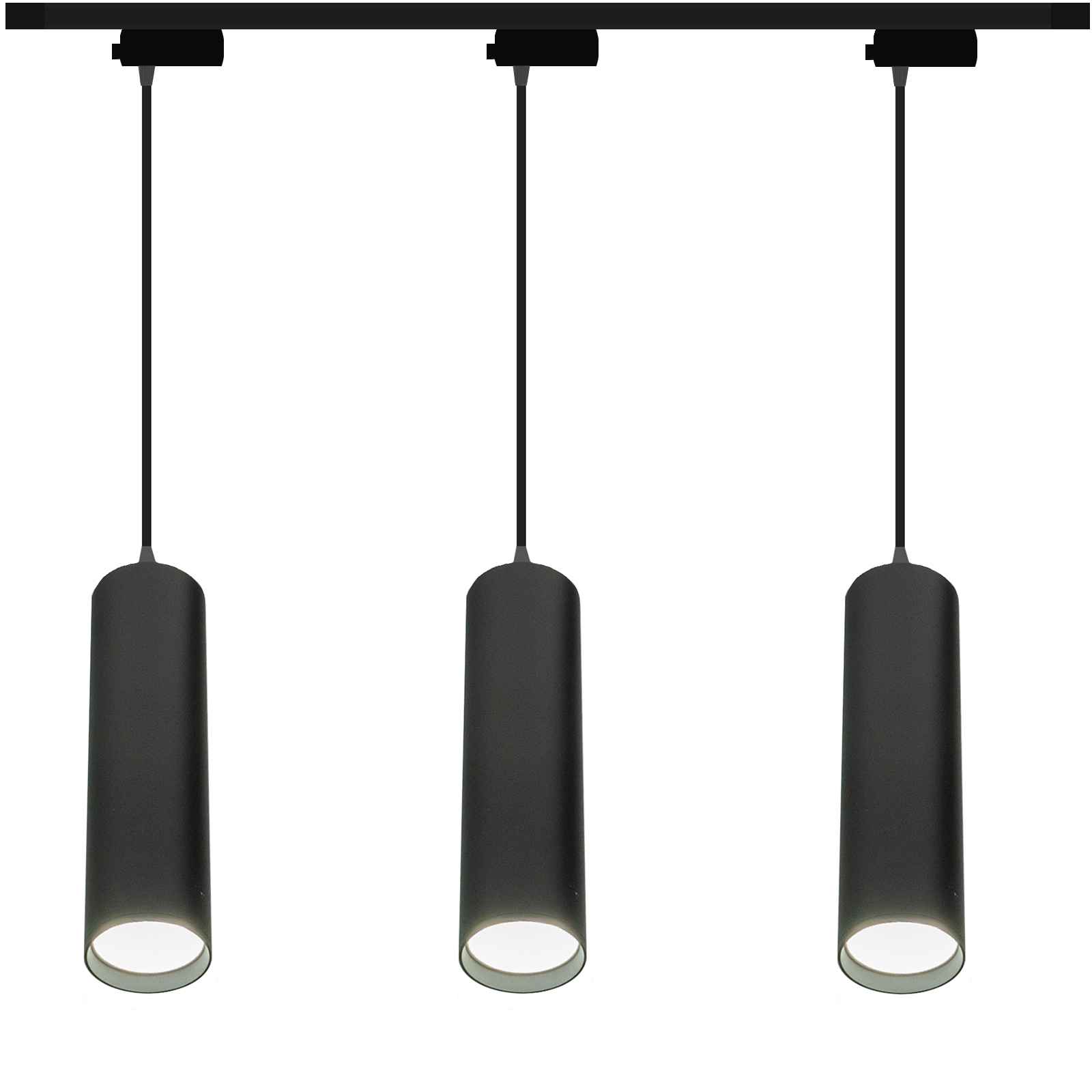 Lampada moderna a sospensione con attacco per binario monofase, realizzata in alluminio di forma cilindrica da design slim è disponibile in 2 colori bianco o nero secondo l'arredamento. Ideale per l'illuminazione interna di bar, caffè, ristoranti, negozi, ambienti domestici dall'arredamento moderno, adatta per sfruttare la versatilità l'illuminazione su binario track.