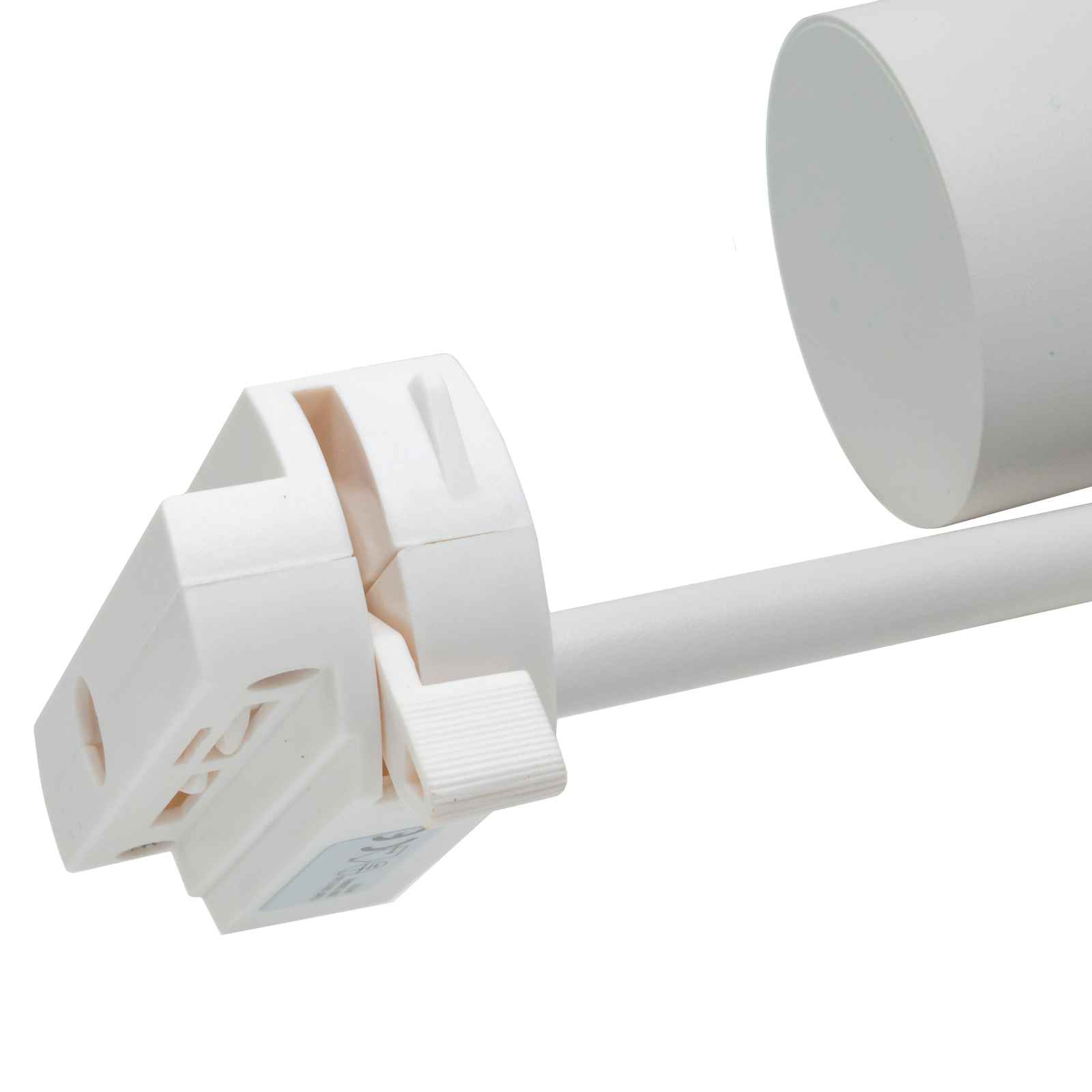 La lampada è intercambiabile consente una facile sostituzione in caso di rottura, questo allunga la durata del prodotto a differenza di fari con LED integrati. Questo faretto ha un design moderno realizzato in alluminio disponibile di colore bianco o nero, si alimenta a 230V tramite binari track eletrificati monofase.