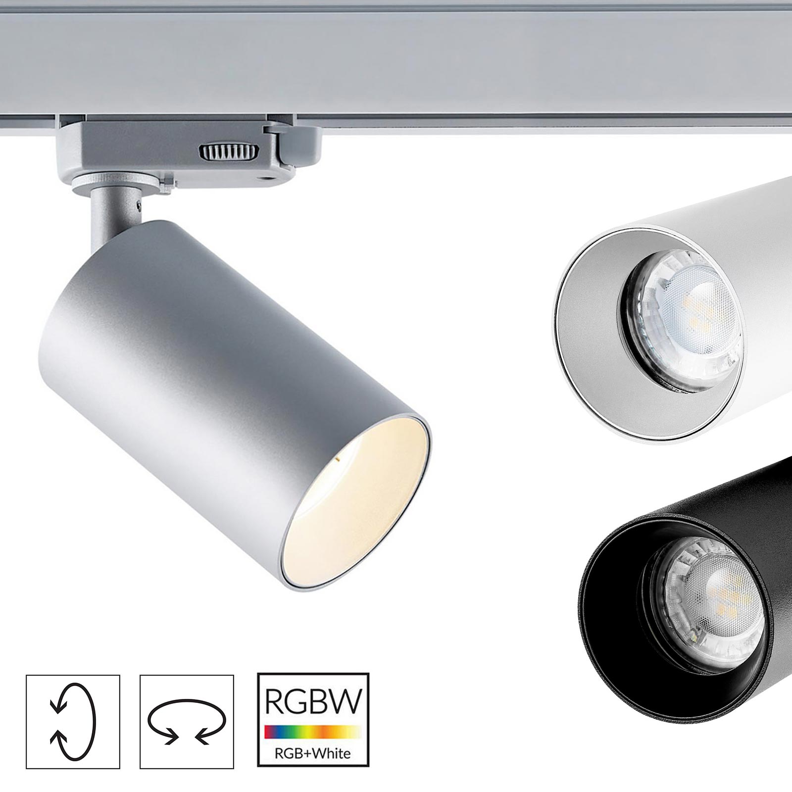 Faretto track binario trifase LED 6W GU10 RGB cromoterapia proiettore luce colorata orientabile negozio vetrine