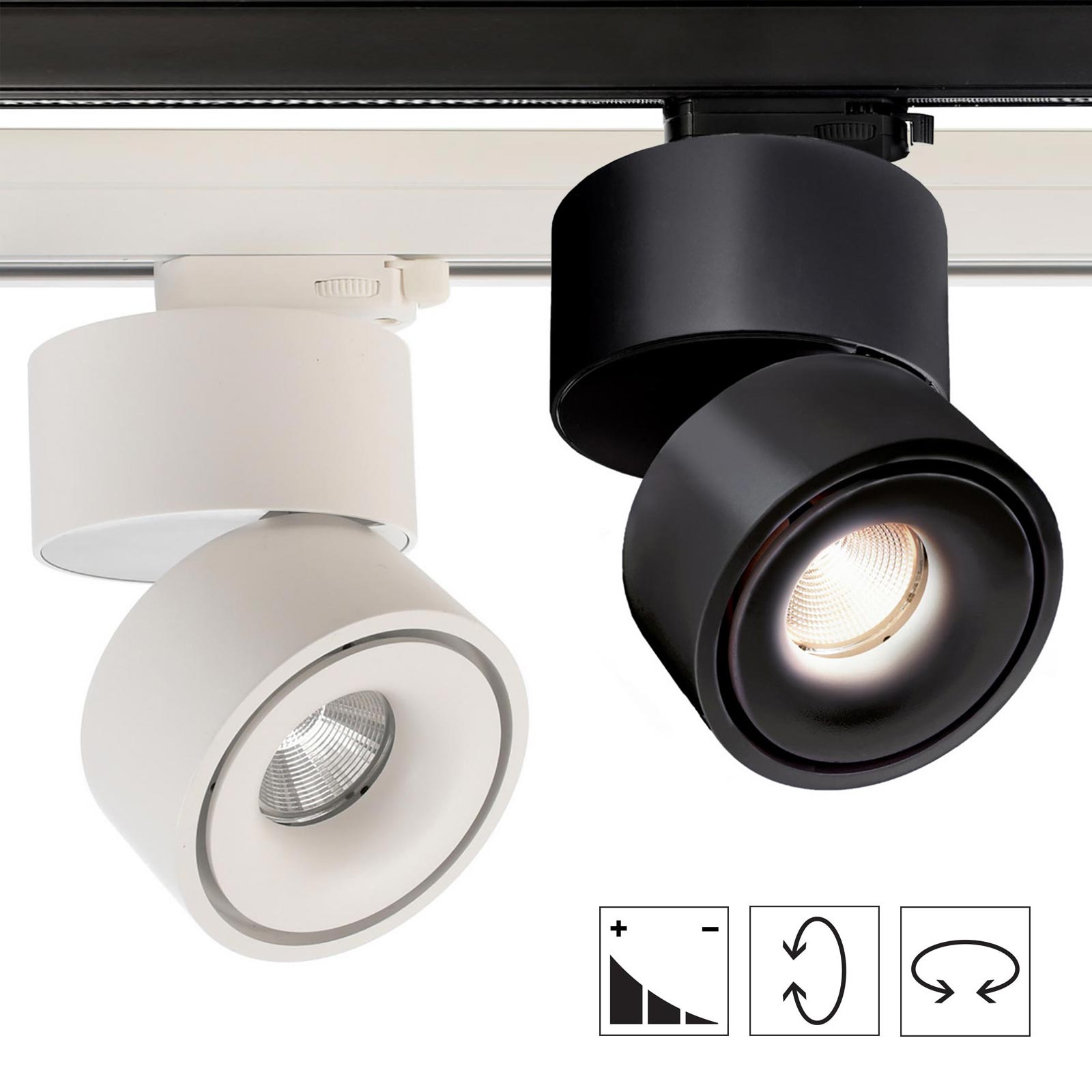 Disponibile di colore Nero o Bianco, si adatta perfettamente a qualsiasi ambiente, sia moderno che classico. Perfetta per negozi, gallerie, abitazioni e uffici dove è richiesta un'illuminazione precisa e regolabile. Inoltre questa lampada è dimmerabile e permette di regolare l'intensità luminosa a seconda delle necessità. Il montaggio è semplice, si alimentata a 230V su binario elettrificato trifase.