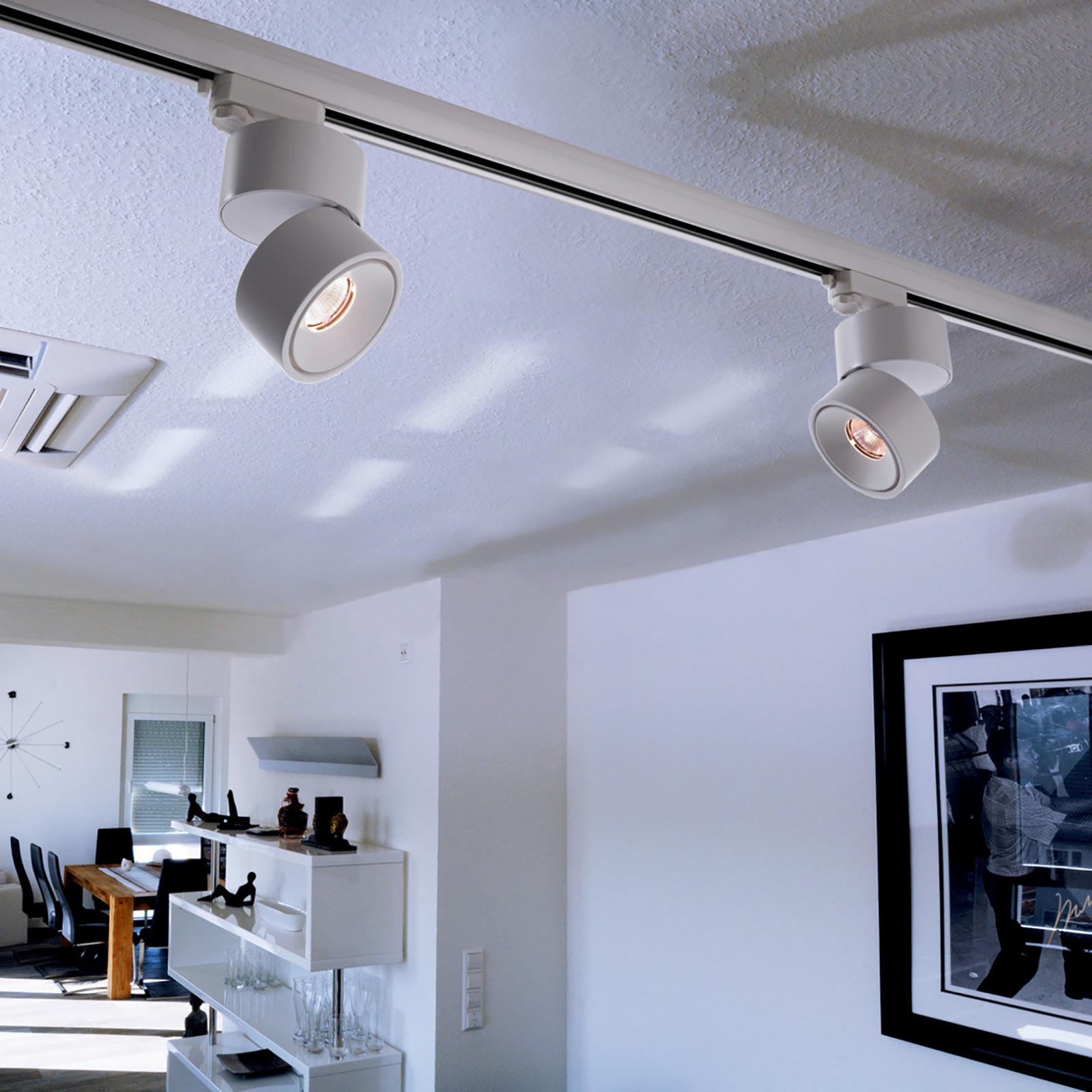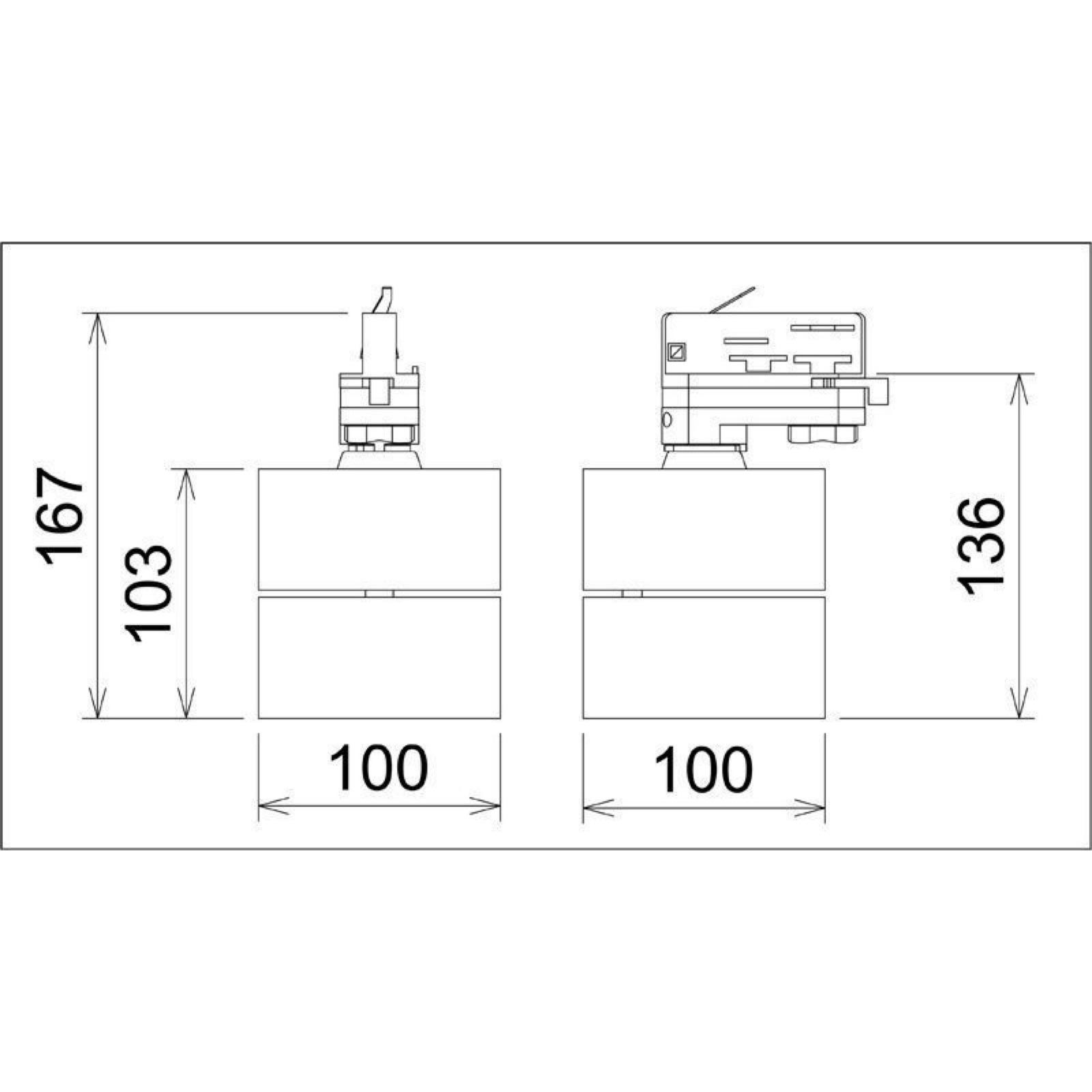 Disponibile di colore Nero o Bianco, si adatta perfettamente a qualsiasi ambiente, sia moderno che classico. Perfetta per negozi, gallerie, abitazioni e uffici dove è richiesta un'illuminazione precisa e regolabile. Inoltre questa lampada è dimmerabile e permette di regolare l'intensità luminosa a seconda delle necessità. Il montaggio è semplice, si alimentata a 230V su binario elettrificato trifase.