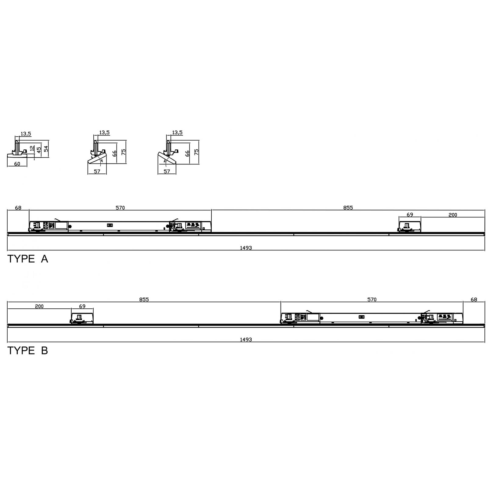 Dimensioni del faretto: Lunghezza di 1493mm - Larghezza: 60mm - Altezza: 54mm
