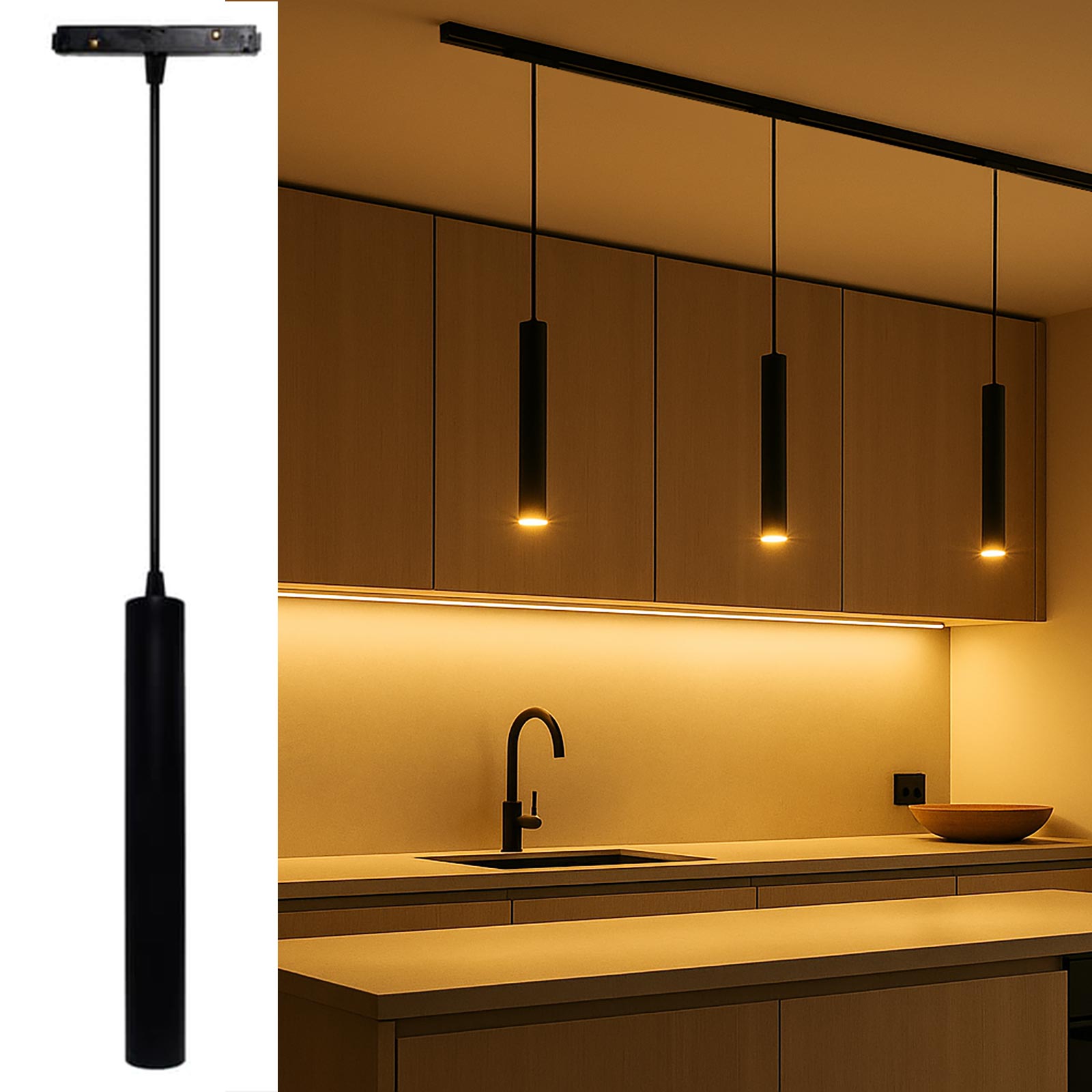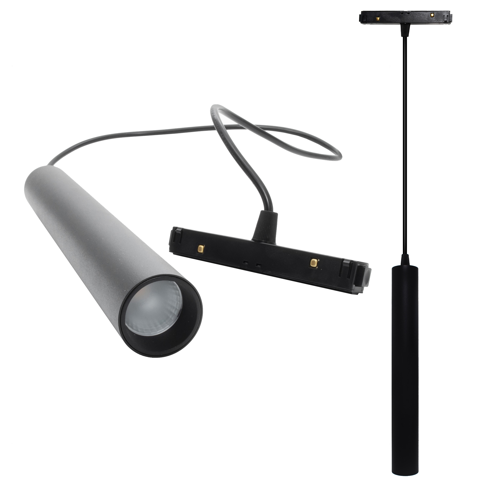 Dotato di 1 LED COB ad alta efficienza energetica con potenza 12W. Realizzato in PVC di colore nero è facile da installare, basta semplicemente inserirlo nel binario ed il gioco è fatto. Inoltre questo particolare pendente lavora a bassa tensione 48V. Il corpo luminoso ha una intensità luminosa di circa 1080 lumen.