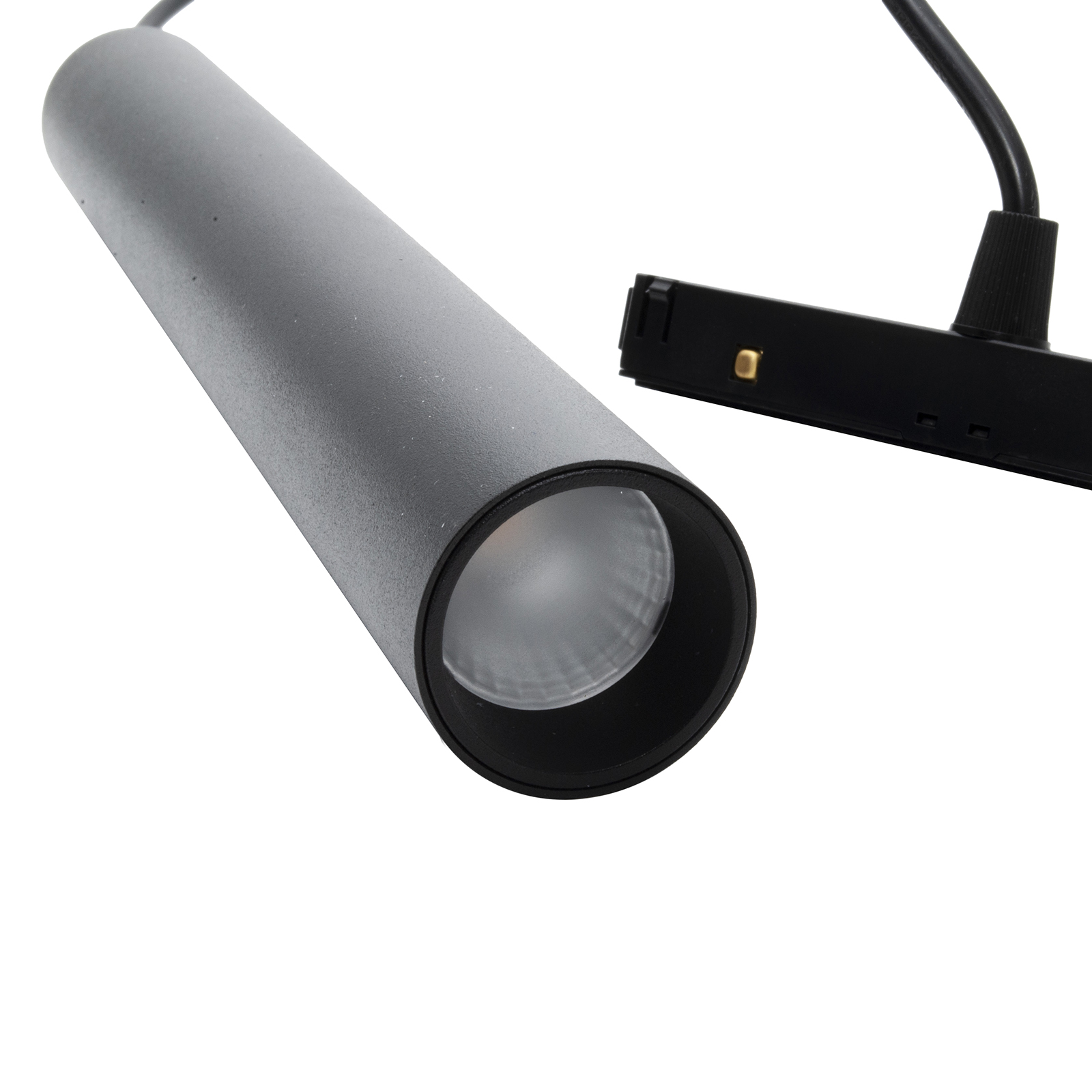 Il faretto ha una forma a cilindro slim è compatibile con binari magnetici, realizzato in alluminio dal design moderno e minimal può essere installato per illuminare tavoli, banconi di bar, pub, tavoli snack bar.