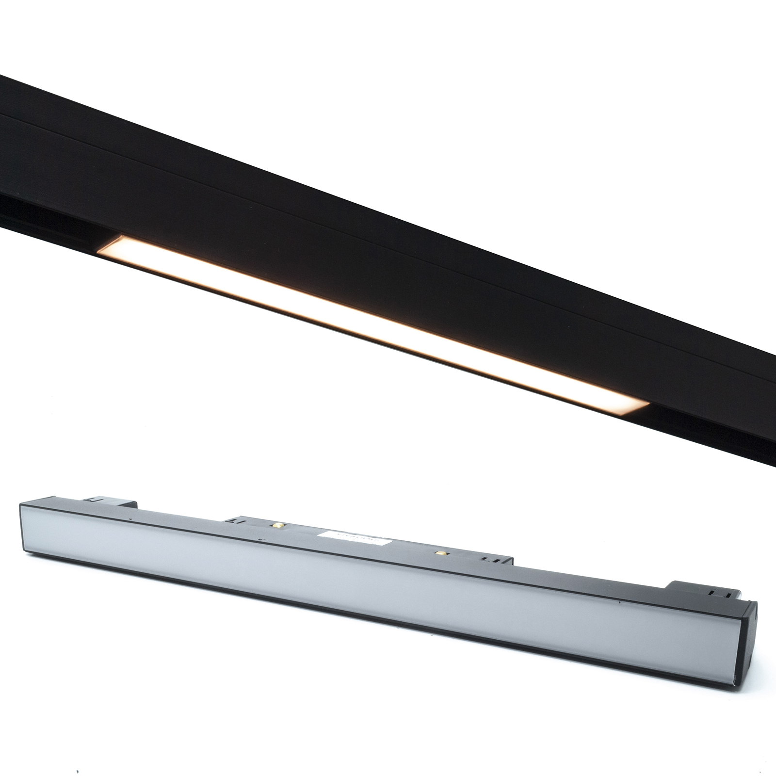 Il faretto ha una forma slim ed è compatibile con binari magnetici, è dotato di LED integrati ad alta efficienza energetica con potenza 10W. Realizzato in PVC di colore nero ha il diffusore opaco che nasconde i LED per un'illuminazione più diffusa che non abbaglia la vista.