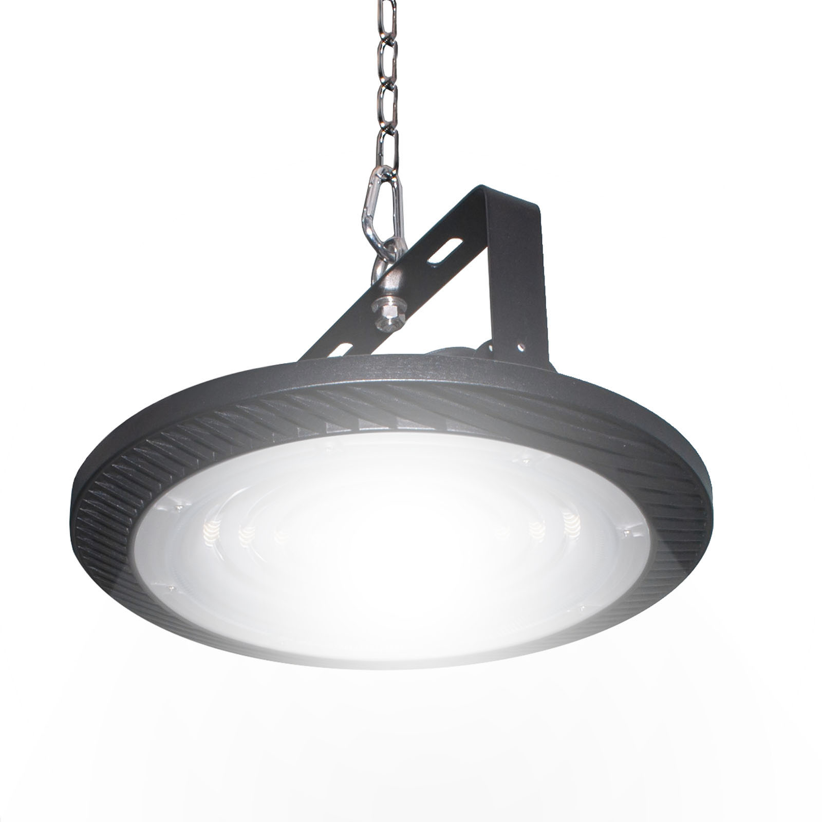 Faro LED industriale con staffa a sospensione dotato di anello a vite per la sospensione con potenza 200W realizzato in lega di alluminio ideale per capannoni, negozi, attività commerciali, centri commerciali. Dotato di led SMD ad alta potenza con un consumo energetico ridotto. La struttura in alluminio consente un'ottima dissipazione del calore. Ideale per illuminare grandi ambienti in ambito lavorativo, ma può essere usato anche in ambienti domestici per illuminare garage, parcheggi ecc..