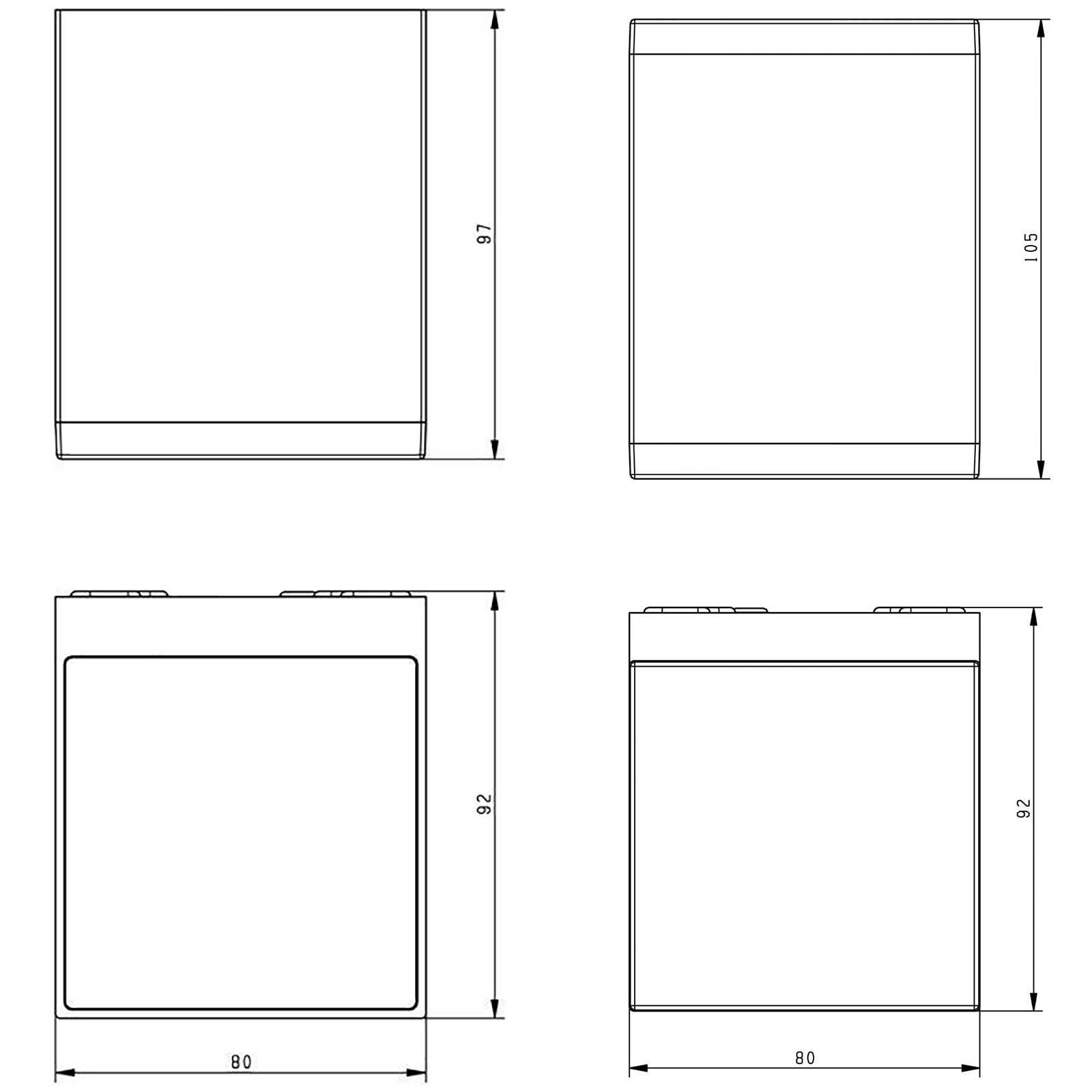 Dimensioni applique singolo fascio: 80mm x 92mm x 97mm - Dimensioni applique doppio fascio: 80mm x 92mm x 105mm - Dimensioni base di fissaggio: 74mm x 12mm x 83mm