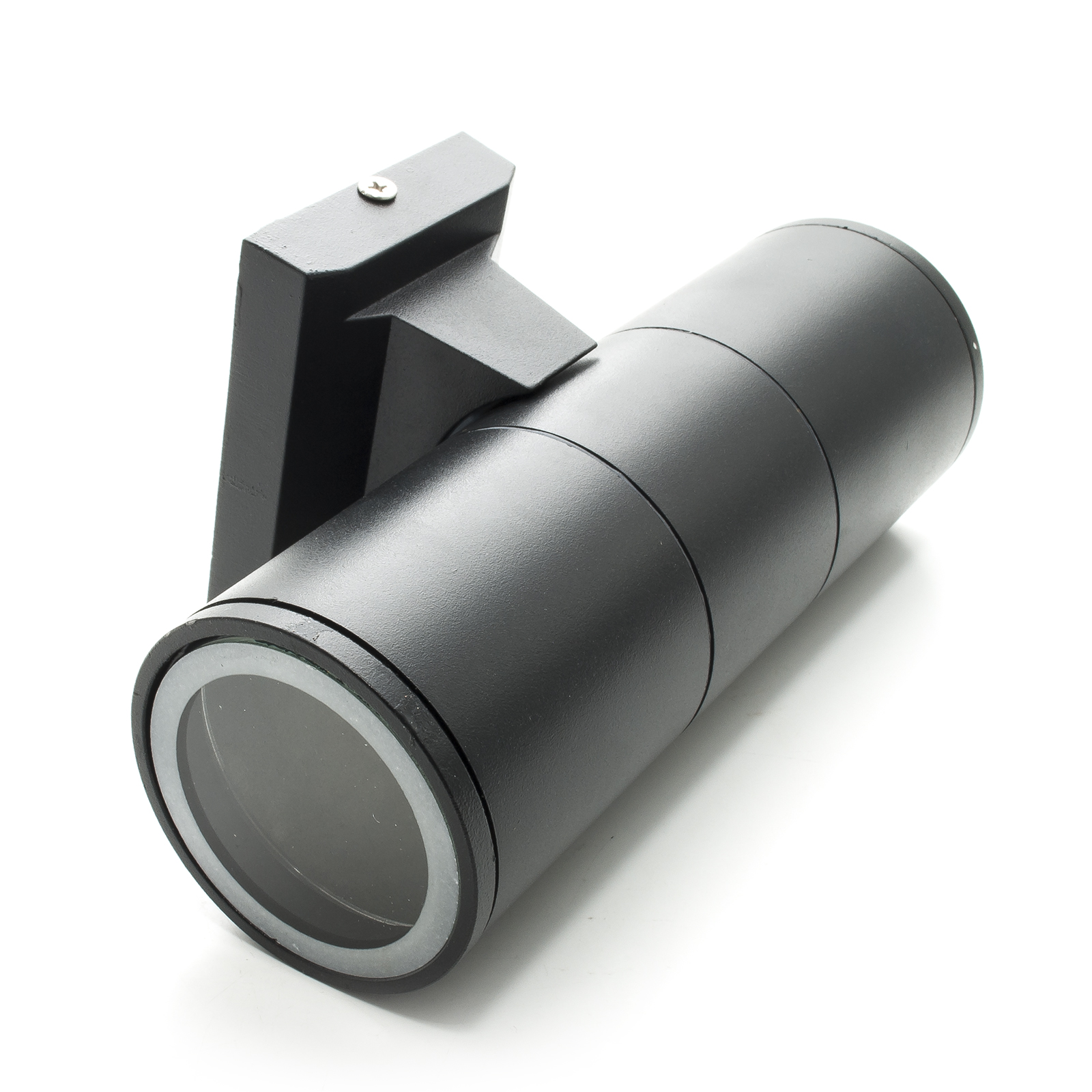 Applique moderno a LED adatto per installazioni a parete o muro dotato di doppio portalampada con attacco GU10 ideale per uso esterno per illuminare ingressi di abitazioni - all'esterno di negozi - attività commerciali - per decorare il giardino - come luce decorativa sotto porticati. Grazie al doppio attacco supporta 2 lampade GU10 generando un particolare effetto luminoso UP & DOWN che va sia verso il basso che verso l'alto.