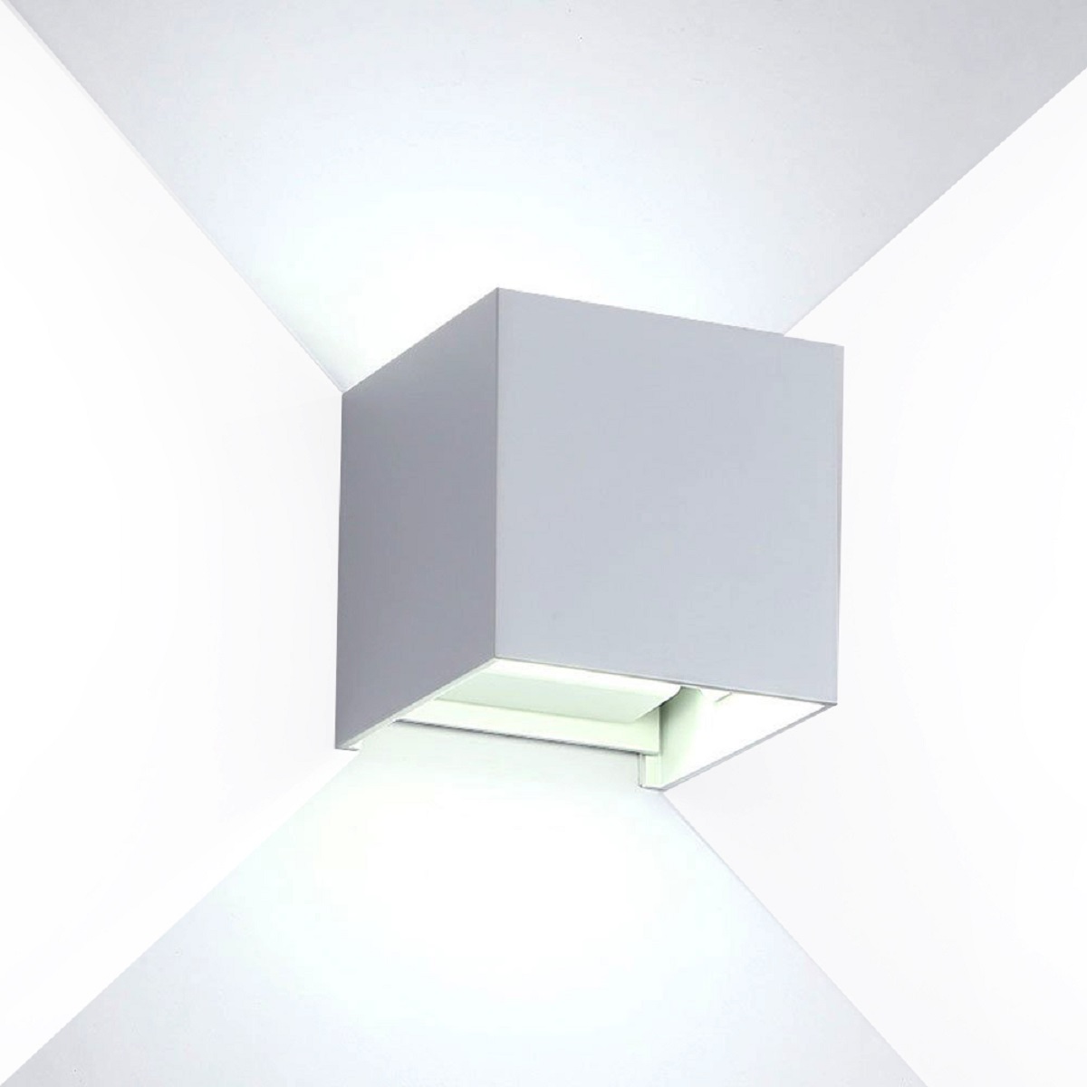 Elegante applique CUBO da parete regolabile alluminio per esterno/interno doppio LED integrato 2 x 20W da 4000 lumen con grado di protezione IP65 dotato di CHIP LINEAR COB LED 3600 LUMEN 2 X 20W con potenza totale di 40W e resa uminosa equivalente a 400W delle vecchie lampade alogene. Adatto per esterni con illuminazione up and down ideale per perimetro di immobili o come luce decorativa a parete.