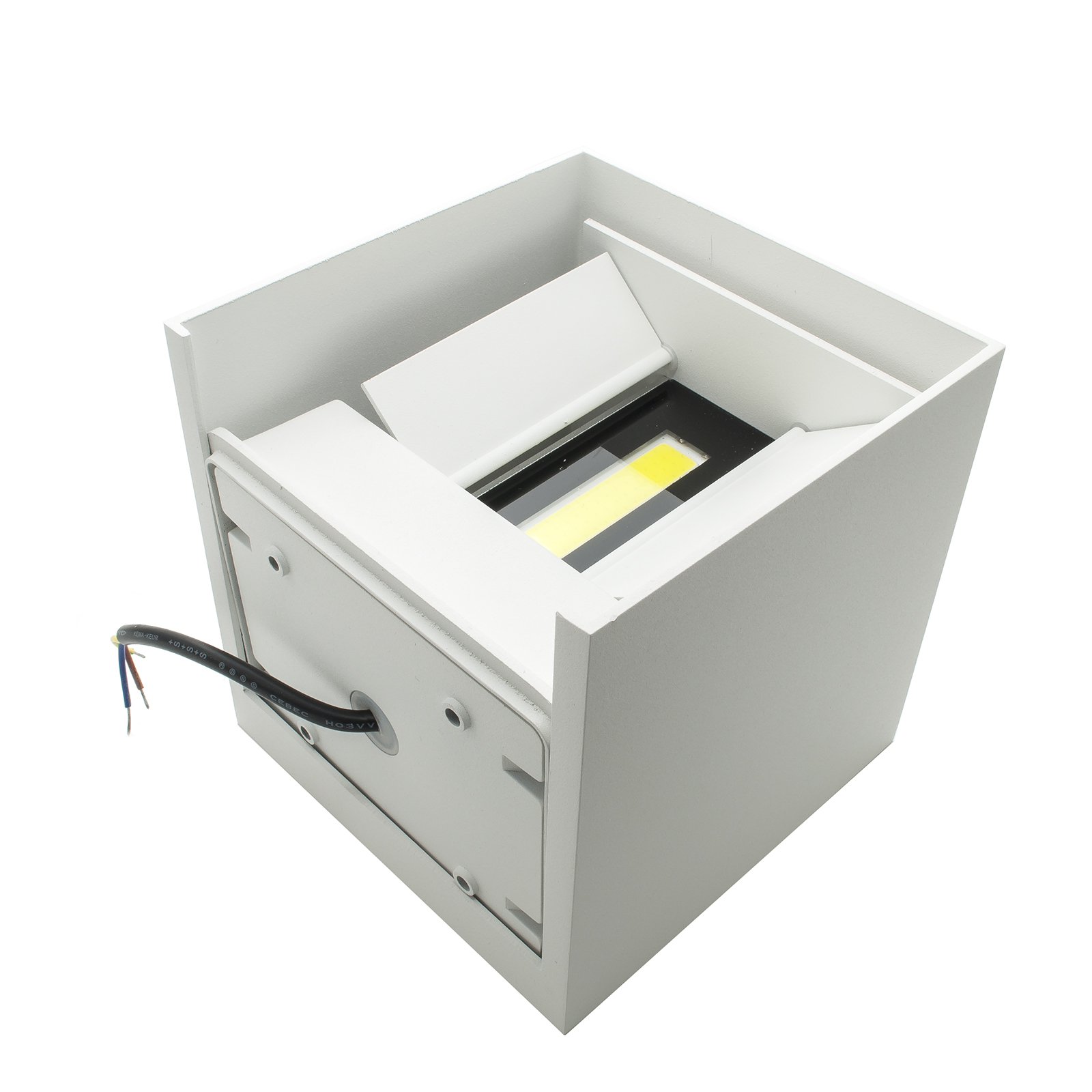 Elegante applique CUBO da parete regolabile alluminio per esterno/interno doppio LED integrato 2 x 20W da 4000 lumen con grado di protezione IP65 dotato di CHIP LINEAR COB LED 3600 LUMEN 2 X 20W con potenza totale di 40W e resa uminosa equivalente a 400W delle vecchie lampade alogene. Adatto per esterni con illuminazione up and down ideale per perimetro di immobili o come luce decorativa a parete.