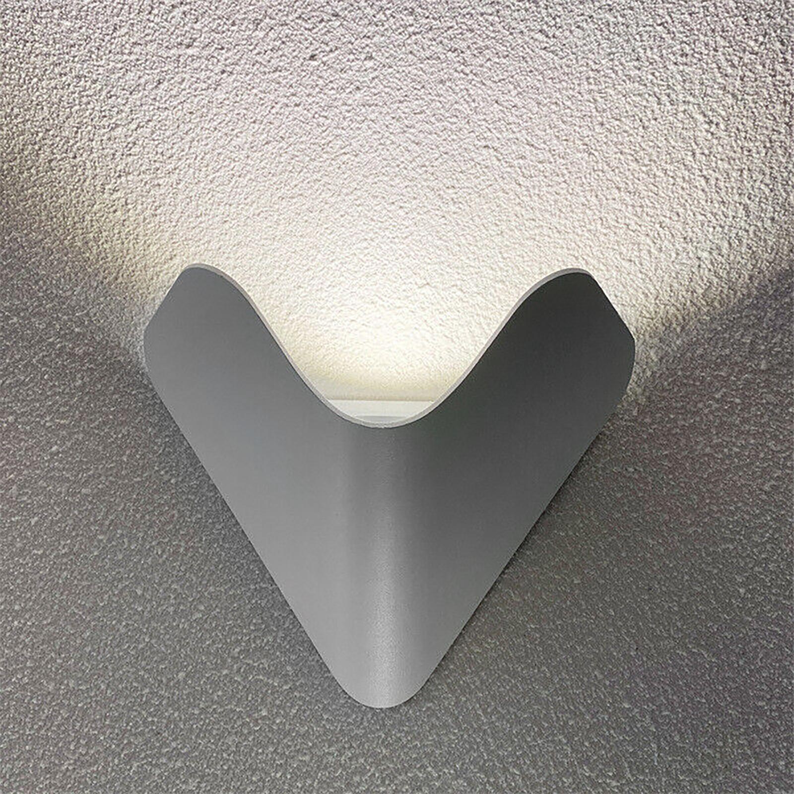 L’effetto luce generato si distingue per la forma triangolare proiettata sulla parete, con un angolo di diffusione di circa 80°, ideale per valorizzare superfici verticali e creare atmosfere suggestive. La struttura è realizzata in alluminio resistente e trattata per garantire protezione contro pioggia, polvere e agenti atmosferici, con grado di impermeabilità IP65.