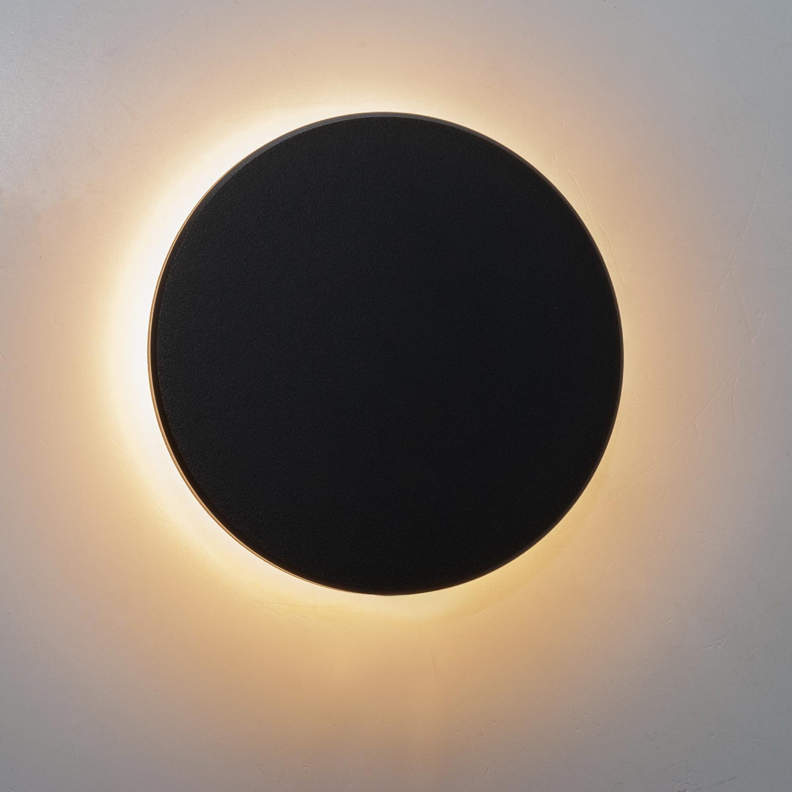 Applique circolare da esterno dal design moderno a forma di disco ideale per illuminare e valorizzare balconi, terrazze, facciate, giardini, garage. Realizzato in ABS di colore nero, proietta la luce su pareti e muro generando un effetto luminoso particolare che combina estetica e funzionalità. L'applique si adatta perfettamente a contesti residenziali e commerciali, come negozi, ristoranti e locali.
