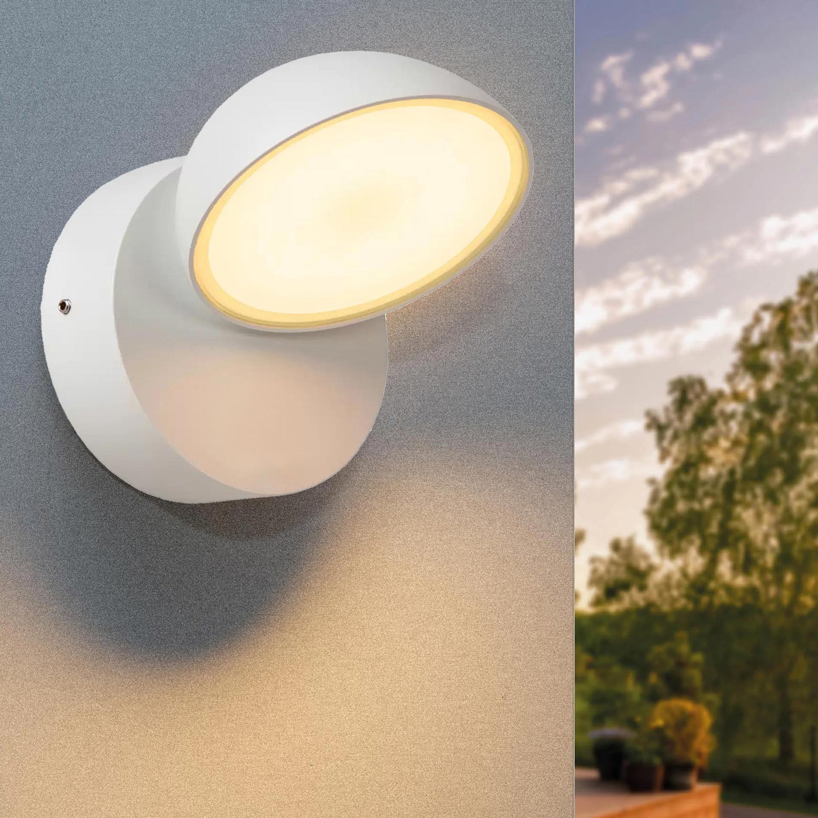 Applique da esterno dal design moderno con diffusore orientabile, ideale per illuminare e valorizzare ingressi, facciate, giardini, terrazze e balconi. Composto da una semi sfera in alluminio con diffusore in vetro che combina estetica e funzionalità, adattandosi a contesti residenziali e commerciali, come negozi, ristoranti e locali grazie anche alla possibilità di orientare il fascio di luce.