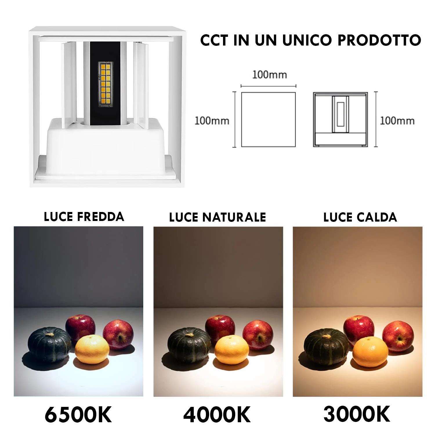 Dimensioni dell'applique: 100mm x 100mm x 100mm