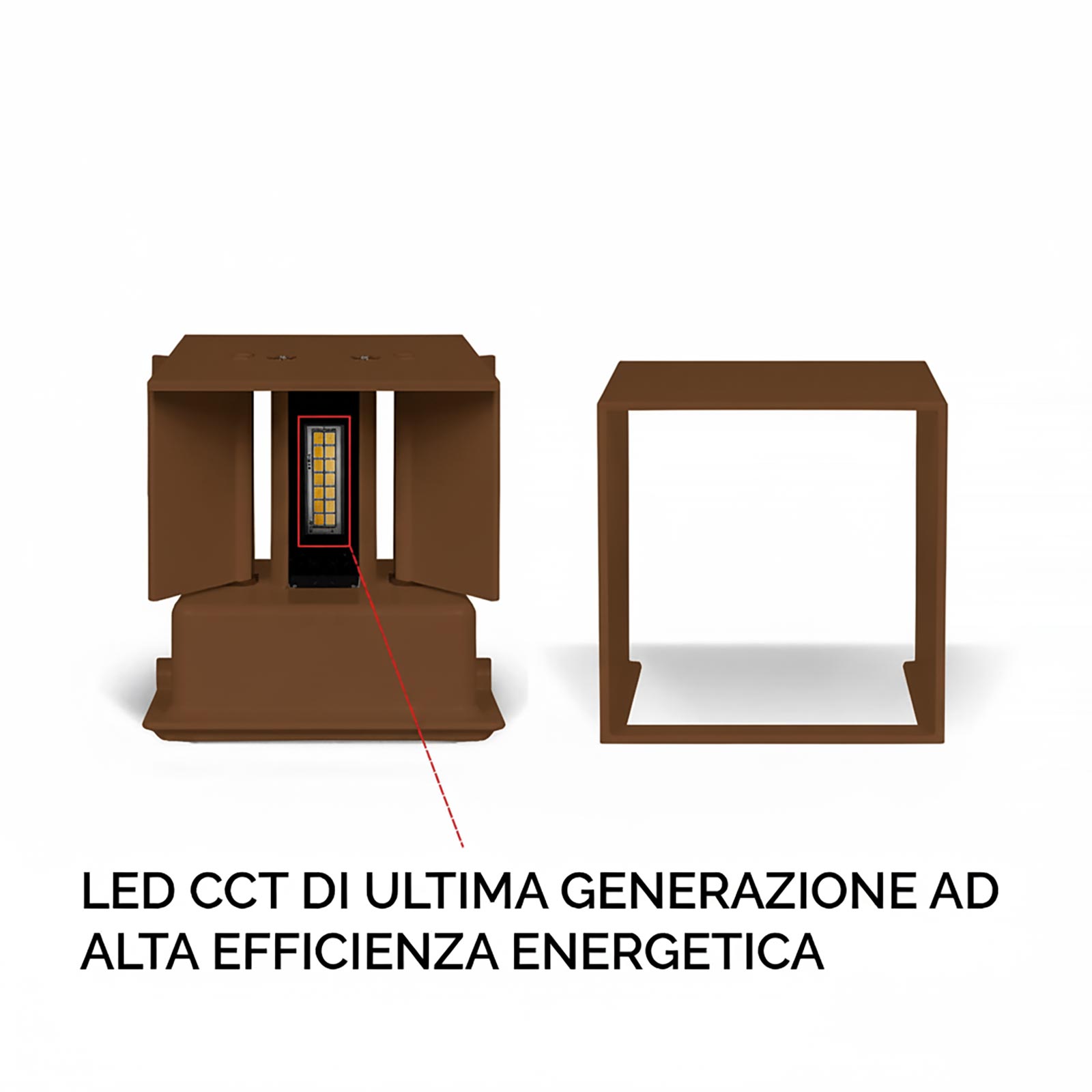 Lampada da parete moderna con tecnologia LED CCT a forma di cubo con alette regolabili realizzata in alluminio progettata per illuminare pareti esterne e interne con stile moderno e funzionalità regolabile. Ideale per creare effetti di luce su pareti e muri di abitazioni, all'esterno di giardini, per decorare ambienti interni ed in tutti quei posti dove si vuole installare un prodotto che oltre ad illuminare diventa un complemento di arredo. Disponibile in 4 colori: bianco, grigio, nero e marrone.