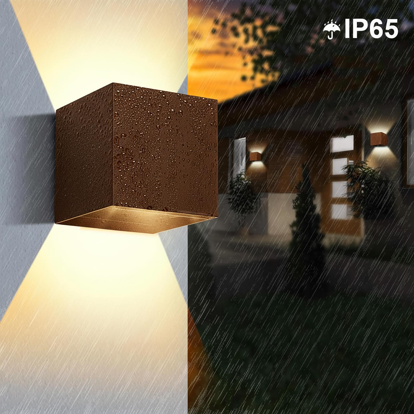 Il corpo in alluminio verniciato a polveri epossidiche garantisce resistenza agli agenti atmosferici, mentre il grado di protezione IP65 assicura un’elevata impermeabilità per installazioni sicure in ambienti esposti come facciate, giardini, terrazze e ingressi. La lampada integra due moduli LED da 6W ciascuno di ultima generazione, per un totale di 12W di potenza e 1000 lumen, con tecnologia CCT selezionabile (3000K, 4000K, 6500K) tramite interruttore interno, che permette di adattare la tonalità della luce all’ambiente