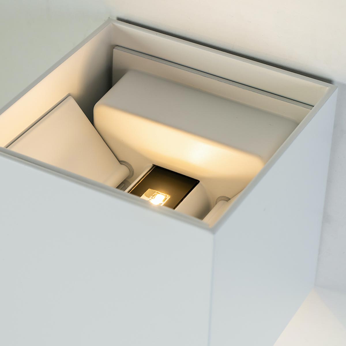 Lampada da parete moderna con tecnologia LED CCT a forma di cubo con alette regolabili realizzata in alluminio progettata per illuminare pareti esterne e interne con stile moderno e funzionalità regolabile. Ideale per creare effetti di luce su pareti e muri di abitazioni, all'esterno di giardini, per decorare ambienti interni ed in tutti quei posti dove si vuole installare un prodotto che oltre ad illuminare diventa un complemento di arredo. Disponibile in 4 colori: bianco, grigio, nero e marrone.