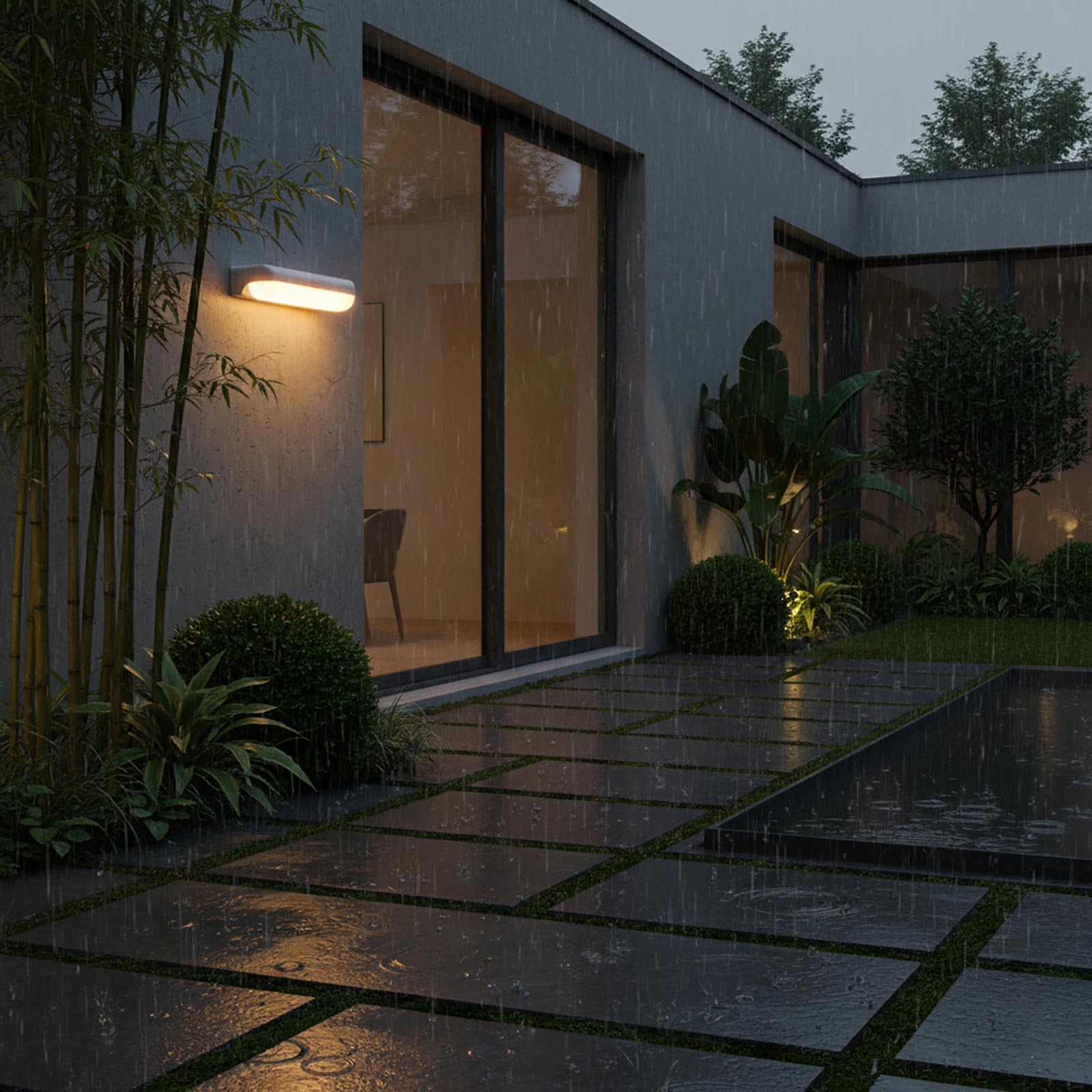 Si adatta perfettamente a contesti residenziali e commerciali, come negozi, ristoranti e locali. Ha un grado di protezione IP65 che garantisce impermeabilità e resistenza agli agenti atmosferici, rendendola perfetta appunto per ambienti esterni.