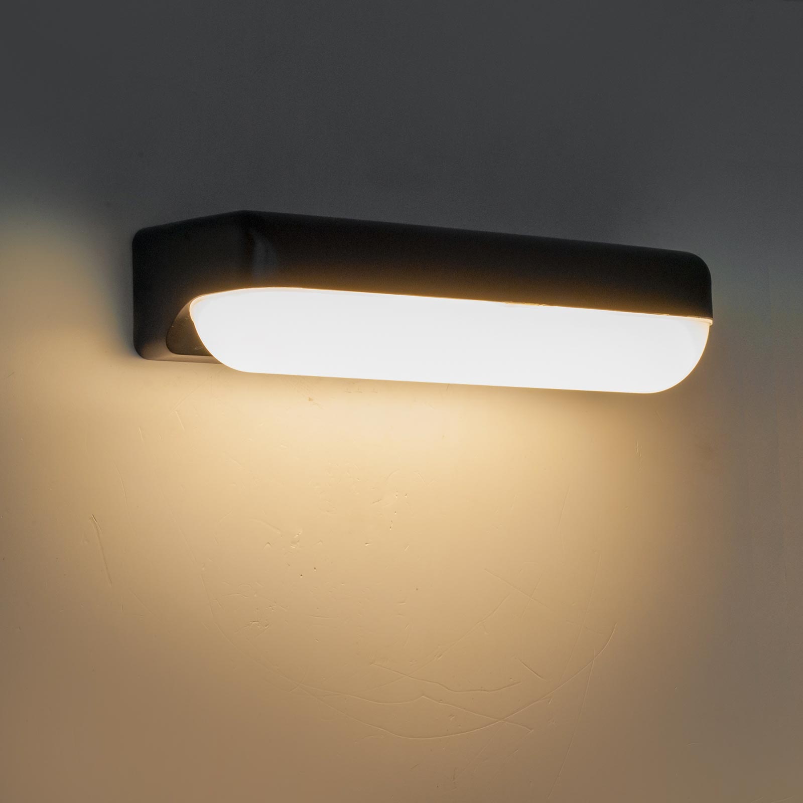 Applique da esterno dal design moderno ideale per illuminare e valorizzare balconi, terrazze, facciate, giardini, garage. Realizzato in ABS è disponibile in 2 colorazioni: nero e bianco, proietta la luce verso il basso su pareti e muri generando un effetto luminoso particolare che combina estetica e funzionalità.