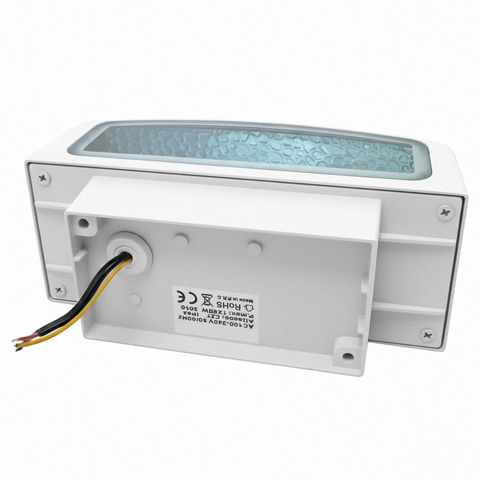 Dimensioni applique: 220mm x 123mm x 90mm - Dimensioni base di fissaggio: 144mm x 75mm x 5mm
