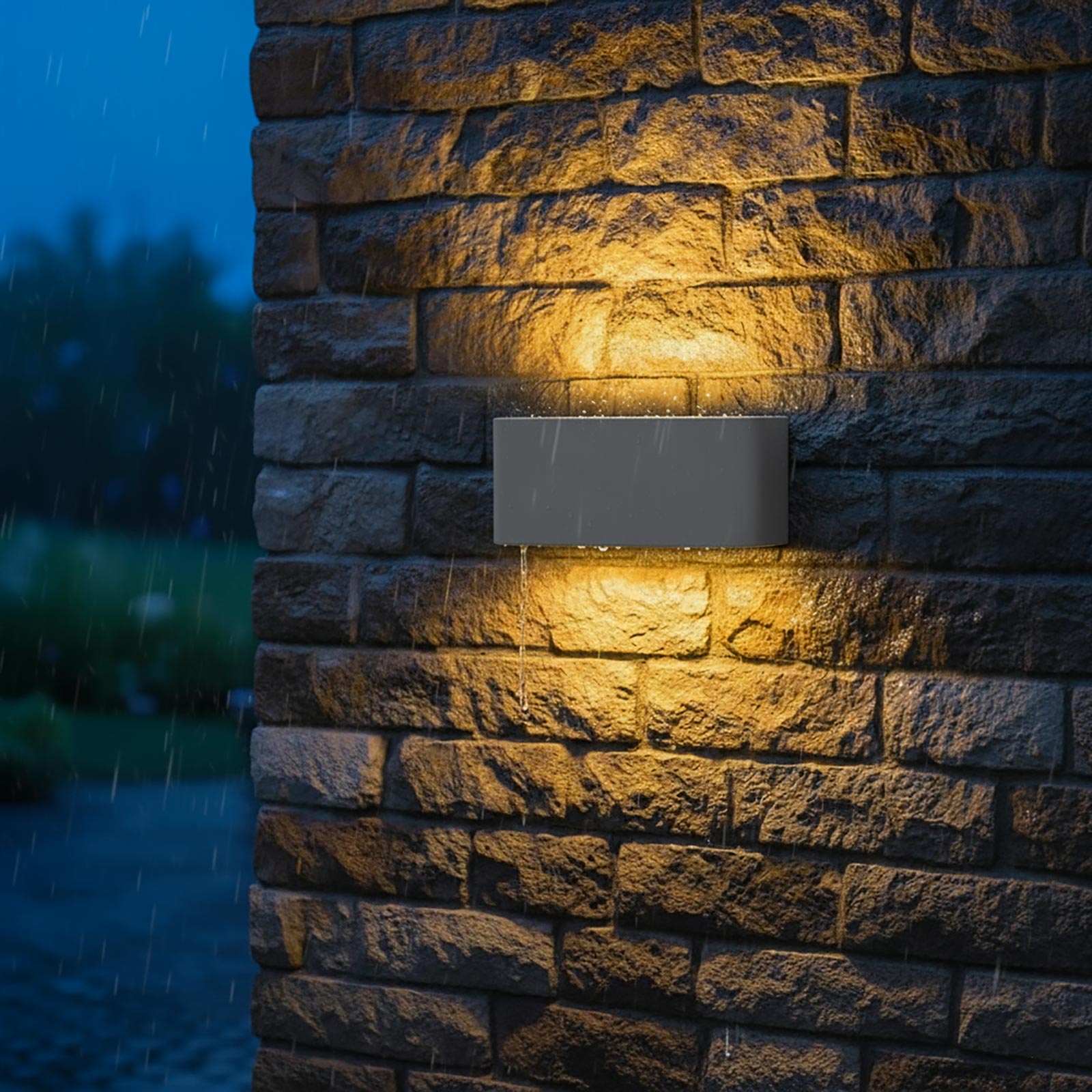 Doppia Emissione Luminosa Effetto Up & Down: L'applique genera un suggestivo fascio di luce sia verso l'alto che verso il basso, valorizzando la parete e offrendo un'illuminazione esterna funzionale e decorativa.