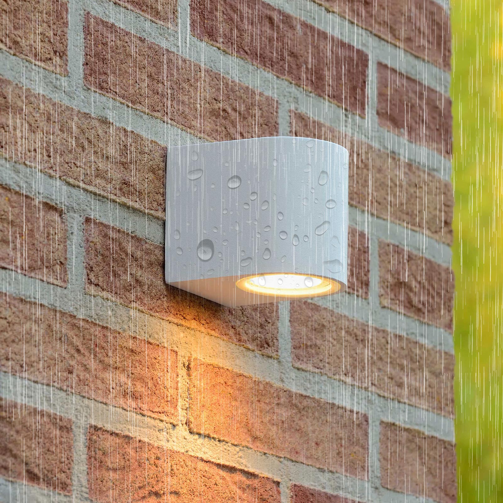 Disponibile in 2 versioni di forma tonda o quadrato con possibilità di scegliere il colore: bianco, nero o corten. L'applique ha la struttura in alluminio con diffusore in vetro temperato ed un grado di protezione IP44 / IP65 resistente alle intemperie e agli agenti atmosferici.