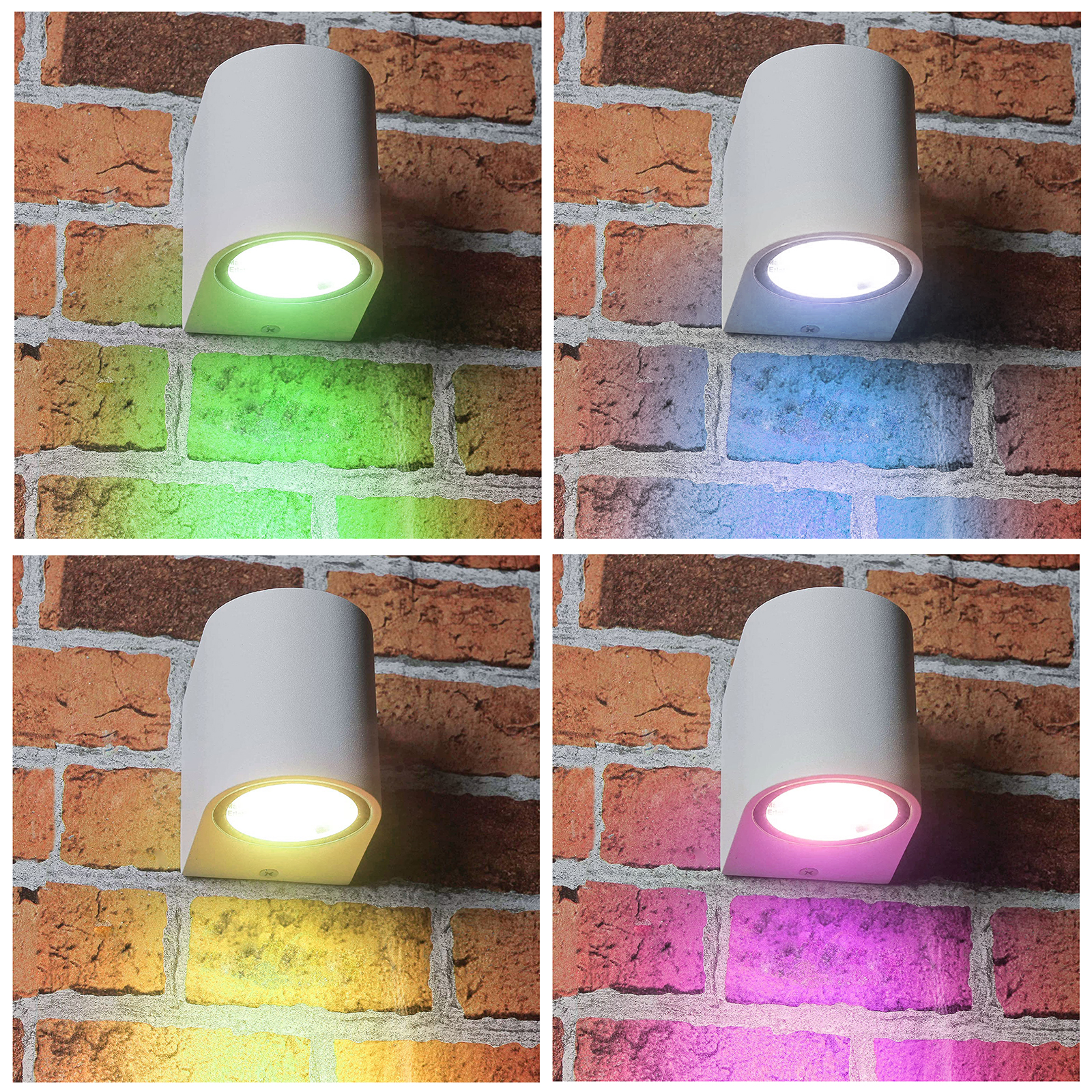 Elegante applique da parete GU10 a singolo fascio di luce RGBW ideale per l'esterno per illuminare e decorare giardini, abitazioni, facciate, negozi, attività commerciali ed in tutti quei posti dove è necessario avere un punto luce dal design moderno. L'applique è dotato di portalampada con attacco GU10, consente l'installazione di 1 faretti GU10 con potenza max. 35W.