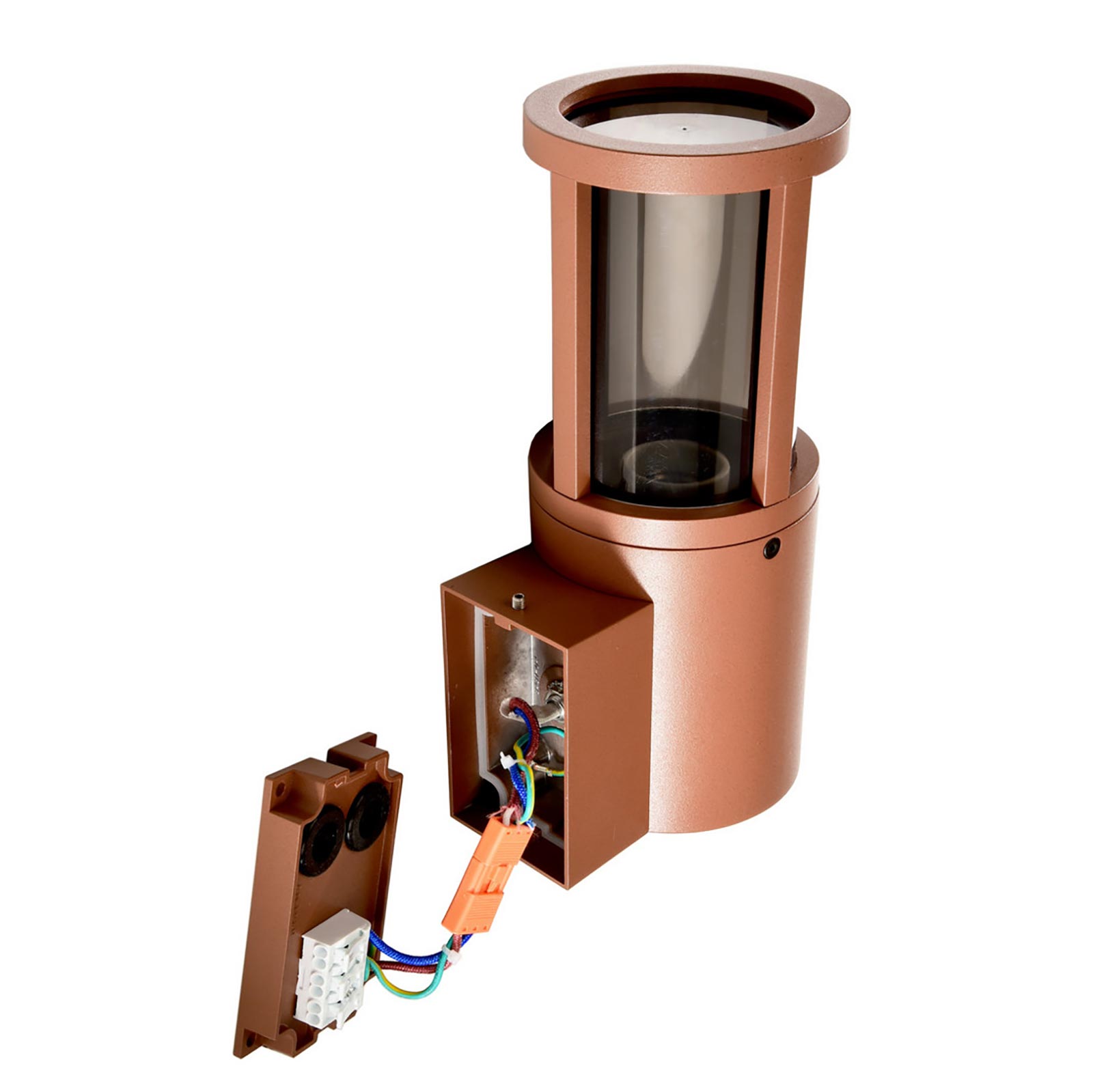 La testa della lampada di nuova concezione fornisce un'illuminazione notevolmente migliorata. Realizzata in alluminio di forma tonda con finitura grigio scuro e corten è compatibile con lampadine con attacco E27 è ideale per l'illuminazione di giardini, balconi, terrazze, all'interno di garage, aree condominiali, ingressi. Perfetto per la sicurezza in zone scure o lungo i percorsi pedonali intorno alla casa.