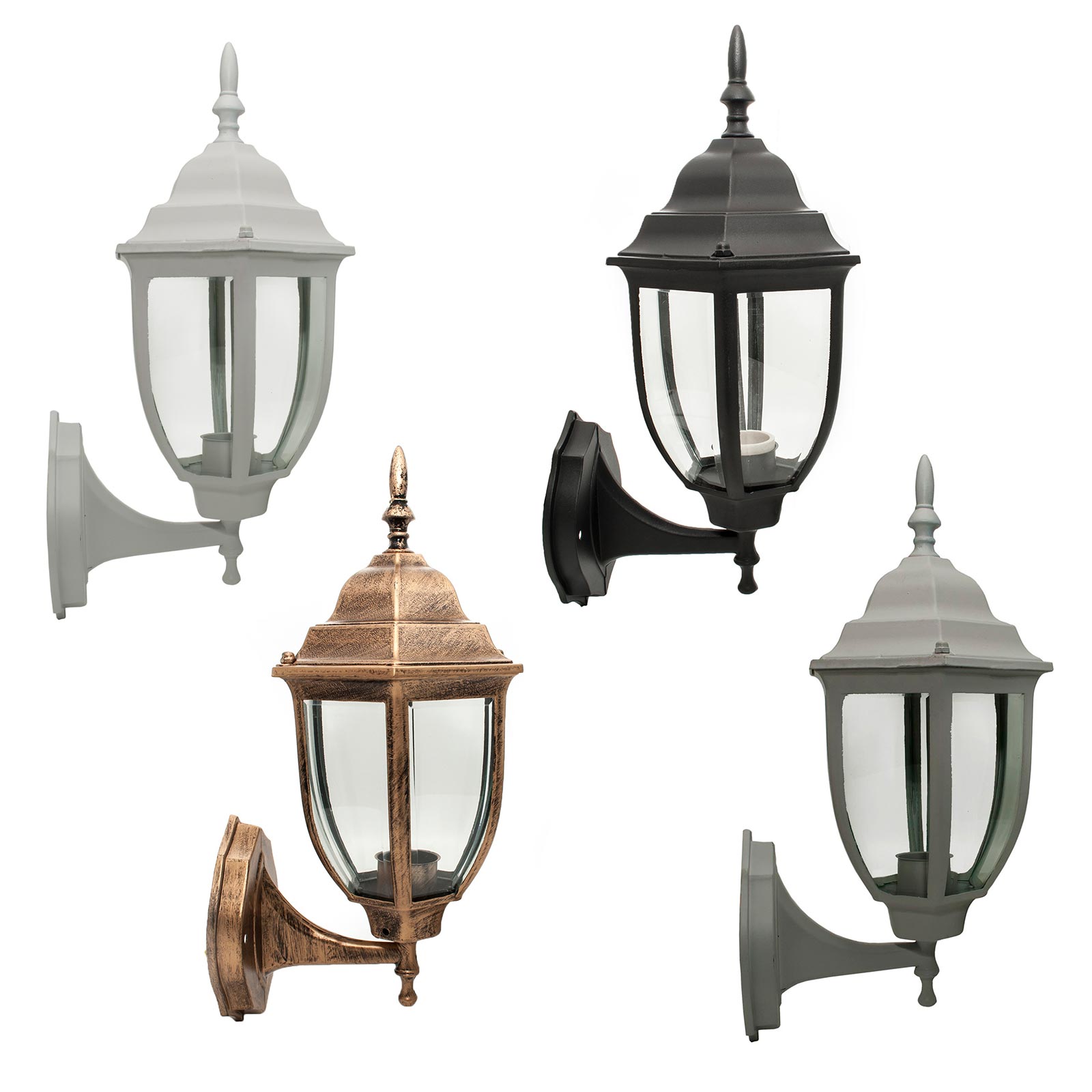 Ha un ottimo grado di protezione che lo rende resistente alle intemperie e gli agenti atmosferici. Il prodotto è disponibile in 4 colori Bianco, Nero, Bronzo e Grigio, per adattarsi a tutti i tipi di arredamento. Viene fornito completo di staffa per il fissaggio a muro supporta lampadine E27 MAX 60W.