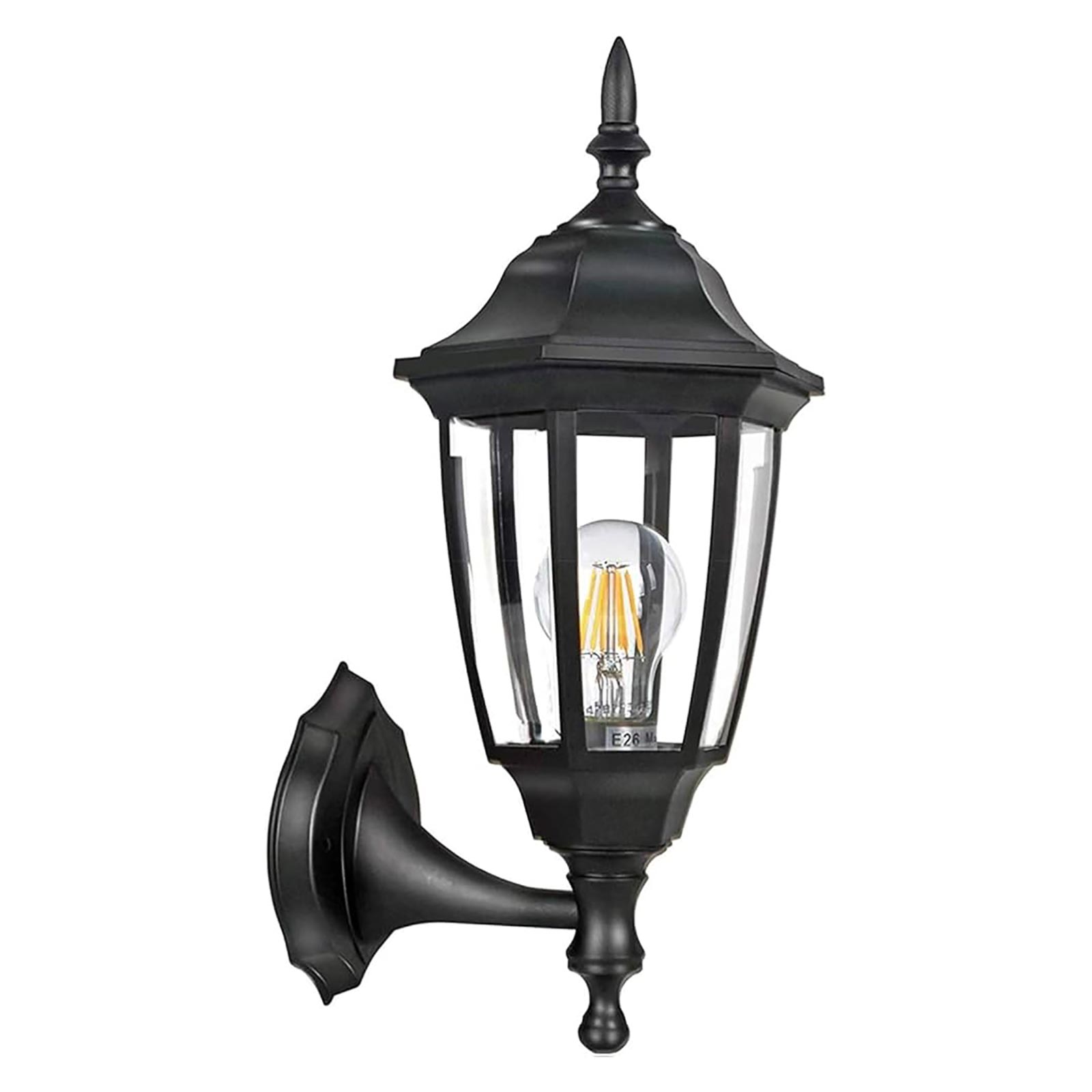Applique LED da parete lanterna modello New York realizzata in alluminio e vetro ideale per uso esterno per l'illuminazione di esterni di abitazioni, giardini, all'esterno di ingressi, negozi, per arredare ed illuminare allo stesso tempo con stile vintage. Questa lanterna integra un portalampada E27 compatibile con la maggior parte di lampade e lampadine E27. Si alimenta direttamente alla rete 230V.