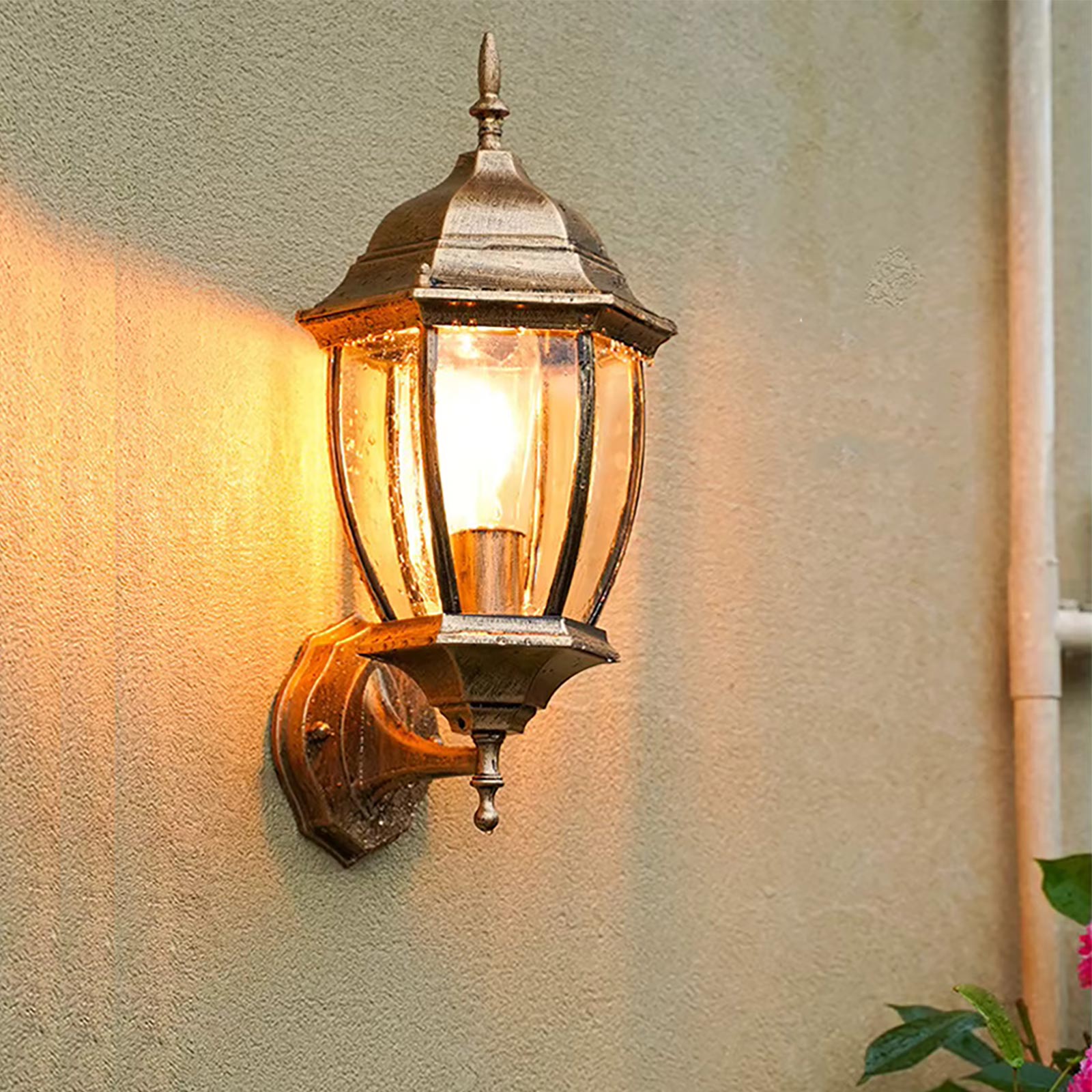Applique LED da parete lanterna modello New York realizzata in alluminio e vetro ideale per uso esterno per l'illuminazione di esterni di abitazioni, giardini, all'esterno di ingressi, negozi, per arredare ed illuminare allo stesso tempo con stile vintage. Questa lanterna integra un portalampada E27 compatibile con la maggior parte di lampade e lampadine E27. Si alimenta direttamente alla rete 230V.