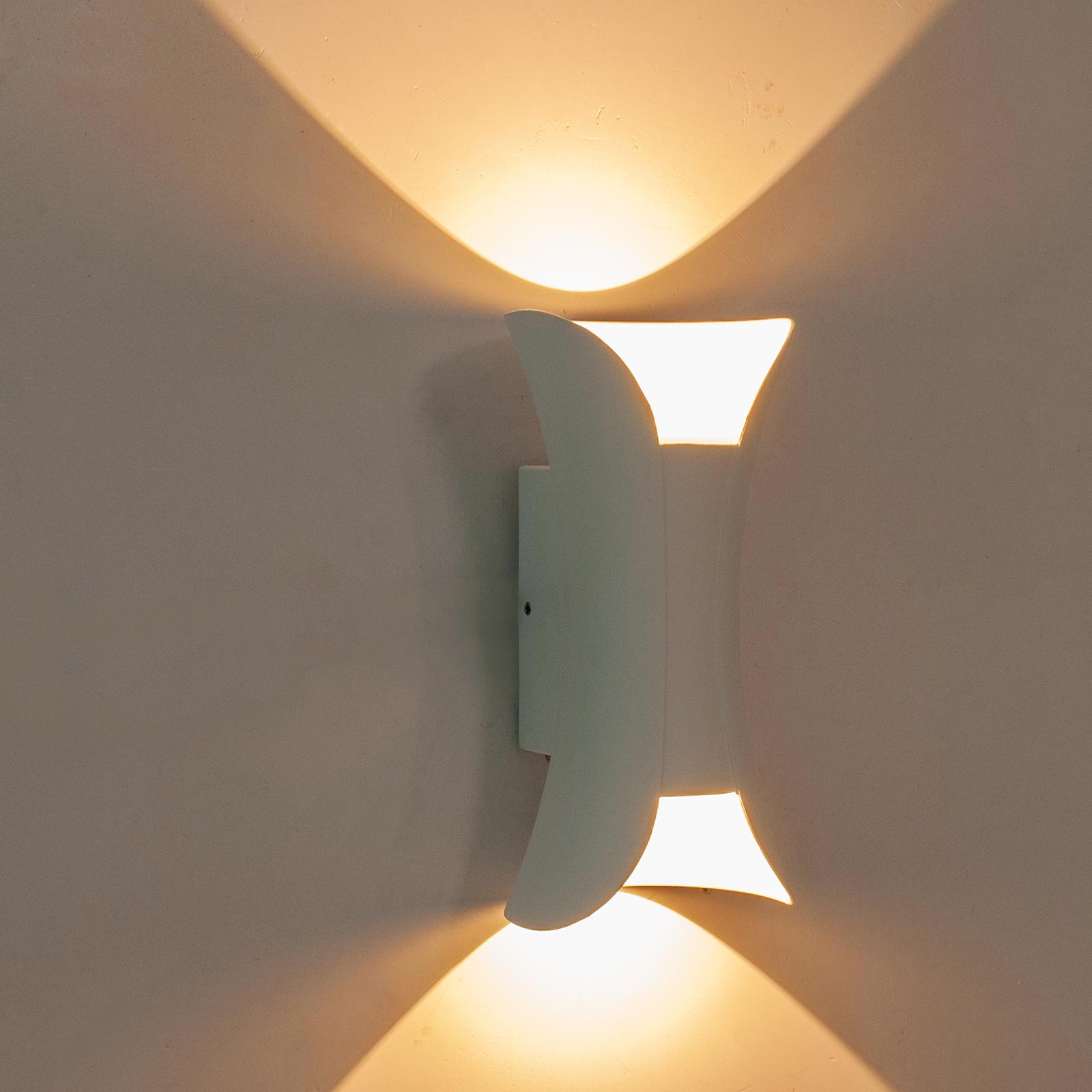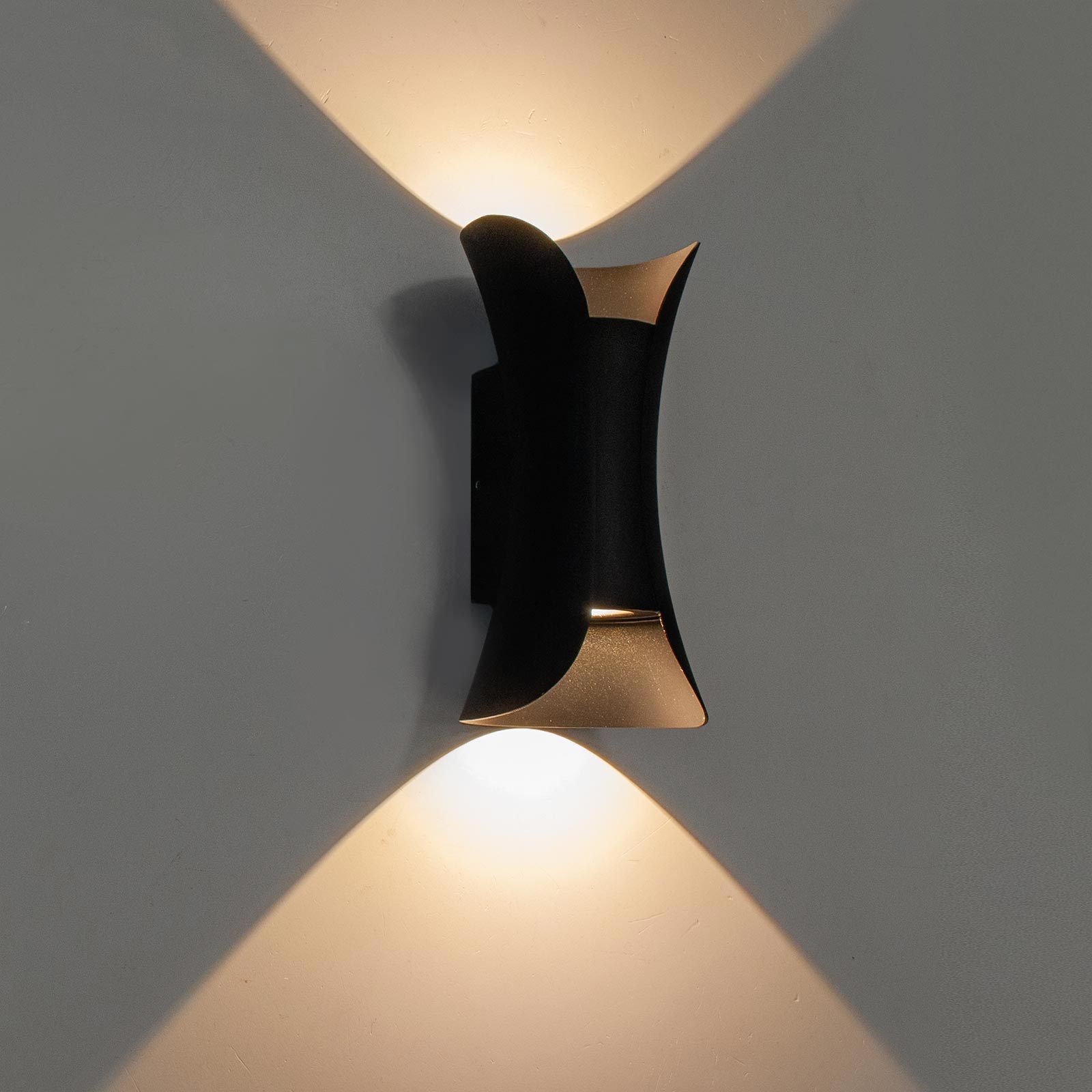 Elegante applique LED a doppia emissione luminosa adatta per uso esterno dal design moderno con una forma stilizzata realizzata in alluminio dotato di LED integrati con tecnologia CCT ad alta efficienza energetica con potenza 10W ideale per installazioni su pareti e muri per l'illuminazione di spazi esterni come giardini, ingressi di abitazioni, facciate, balconi, terrazzi, all'esterno di negozi, attività commerciali, ristoranti, pizzerie ed in tutti quei posti dove si vuole installare un prodotto che oltre ad illuminare diventa un complemento di arredo.