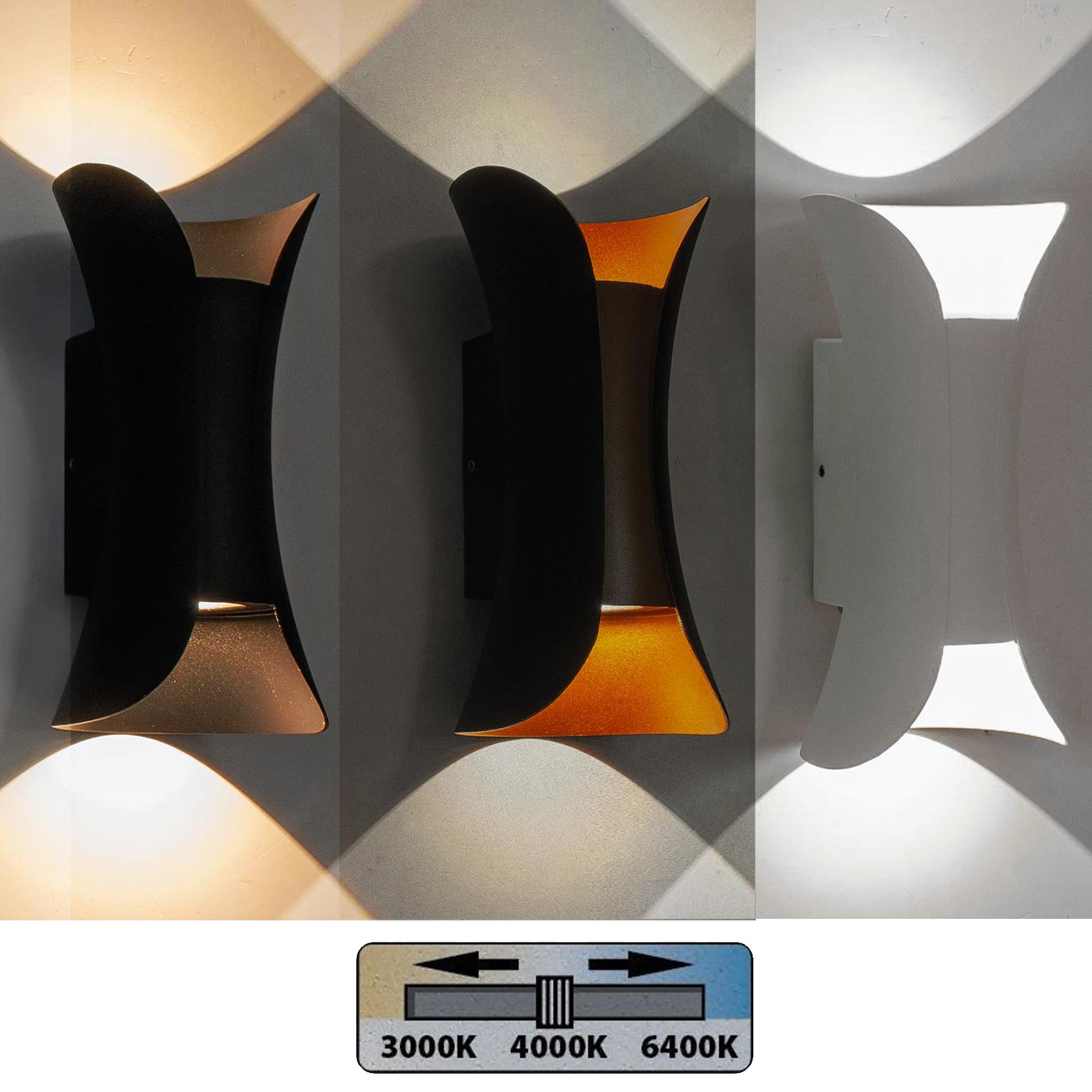 Elegante applique LED a doppia emissione luminosa adatta per uso esterno dal design moderno con una forma stilizzata realizzata in alluminio dotato di LED integrati con tecnologia CCT ad alta efficienza energetica con potenza 10W ideale per installazioni su pareti e muri per l'illuminazione di spazi esterni come giardini, ingressi di abitazioni, facciate, balconi, terrazzi, all'esterno di negozi, attività commerciali, ristoranti, pizzerie ed in tutti quei posti dove si vuole installare un prodotto che oltre ad illuminare diventa un complemento di arredo.