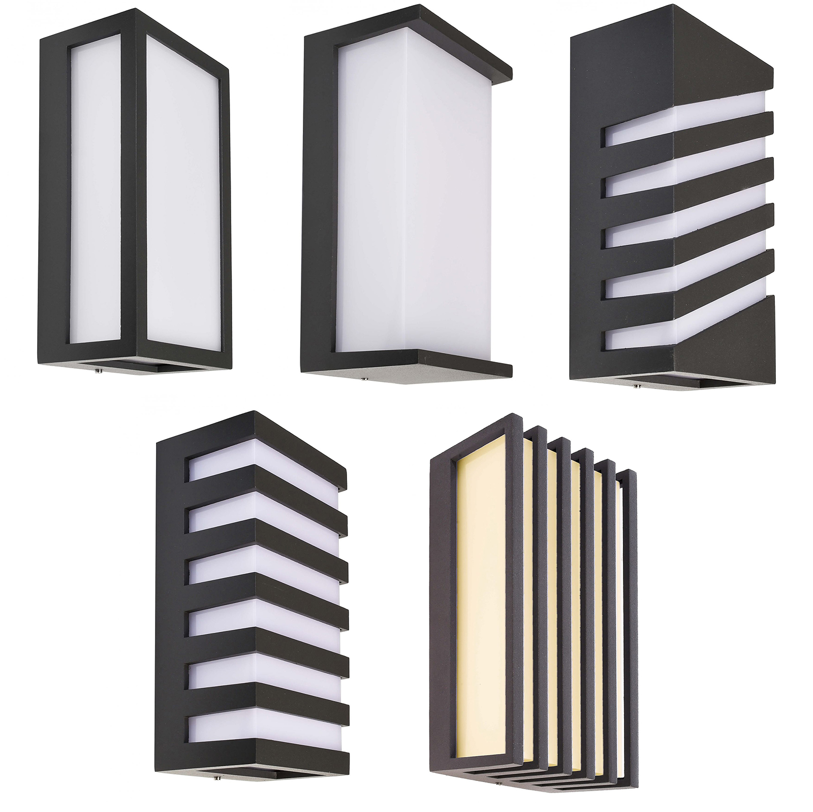 Disponibili in 5 modelli con bordi, senza bordi, con linee orizzontali, con linee verticali, con linee diagonali. L'intensità luminosa varia in base al modello da 205 lumen fino a 440 lumen. Sono realizzati in alluminio pressofuso di alta qualità verniciati di colore colore grigio scuro per adattarsi a tutti i tipi di arredamento. Gli applique hanno un grado di protezione IP54 resistente alle intemperie e gli agenti atmosferici.