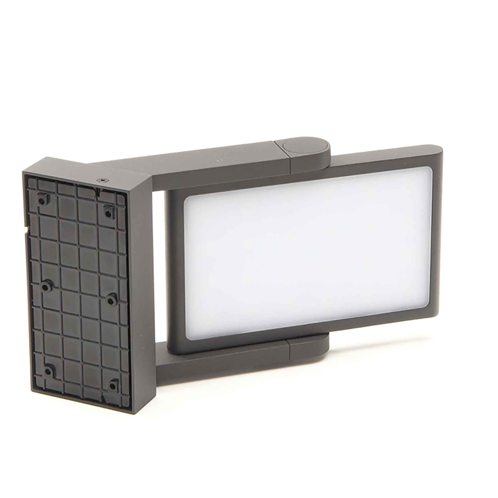 Applique solare a LED da design moderno adatto per installazioni a parete dotato di pannello solare ideale per esterno per illuminare terrazzi, balconi, ingressi, giardini, porticati. Questa lampada è dotata di diffusore orientabile fino a 180 gradi con LED integrati con potenza 1.60W. Realizzata in alluminio di colore grigio scuro ha un grado di protezione IP54 resistente alle intemperie e gli agenti atmosferici.