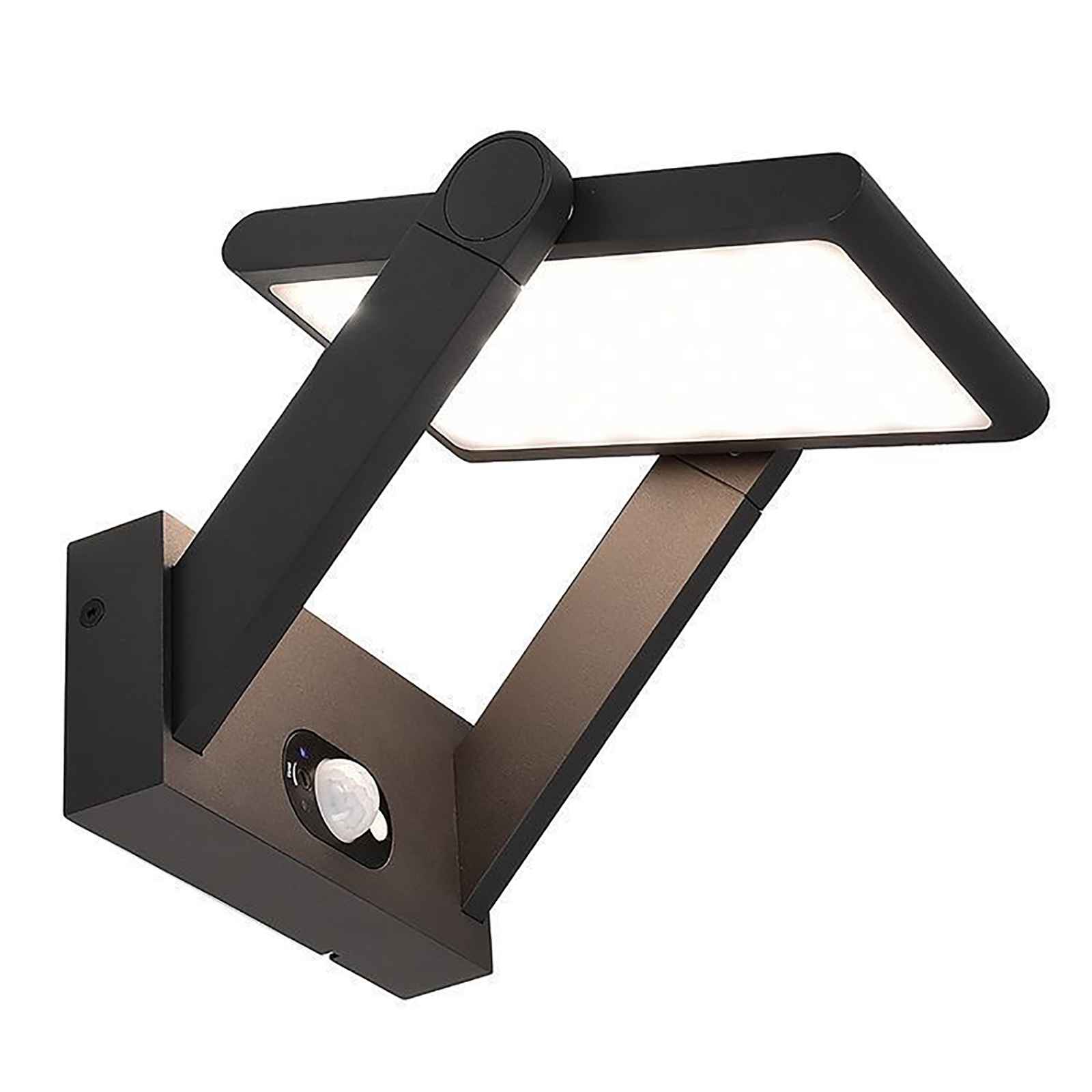 Applique solare a LED da design moderno adatto per installazioni a parete dotato di pannello solare ideale per esterno per illuminare terrazzi, balconi, ingressi, giardini, porticati. Questa lampada è dotata di diffusore orientabile fino a 180 gradi con LED integrati con potenza 1.60W. Realizzata in alluminio di colore grigio scuro ha un grado di protezione IP54 resistente alle intemperie e gli agenti atmosferici.
