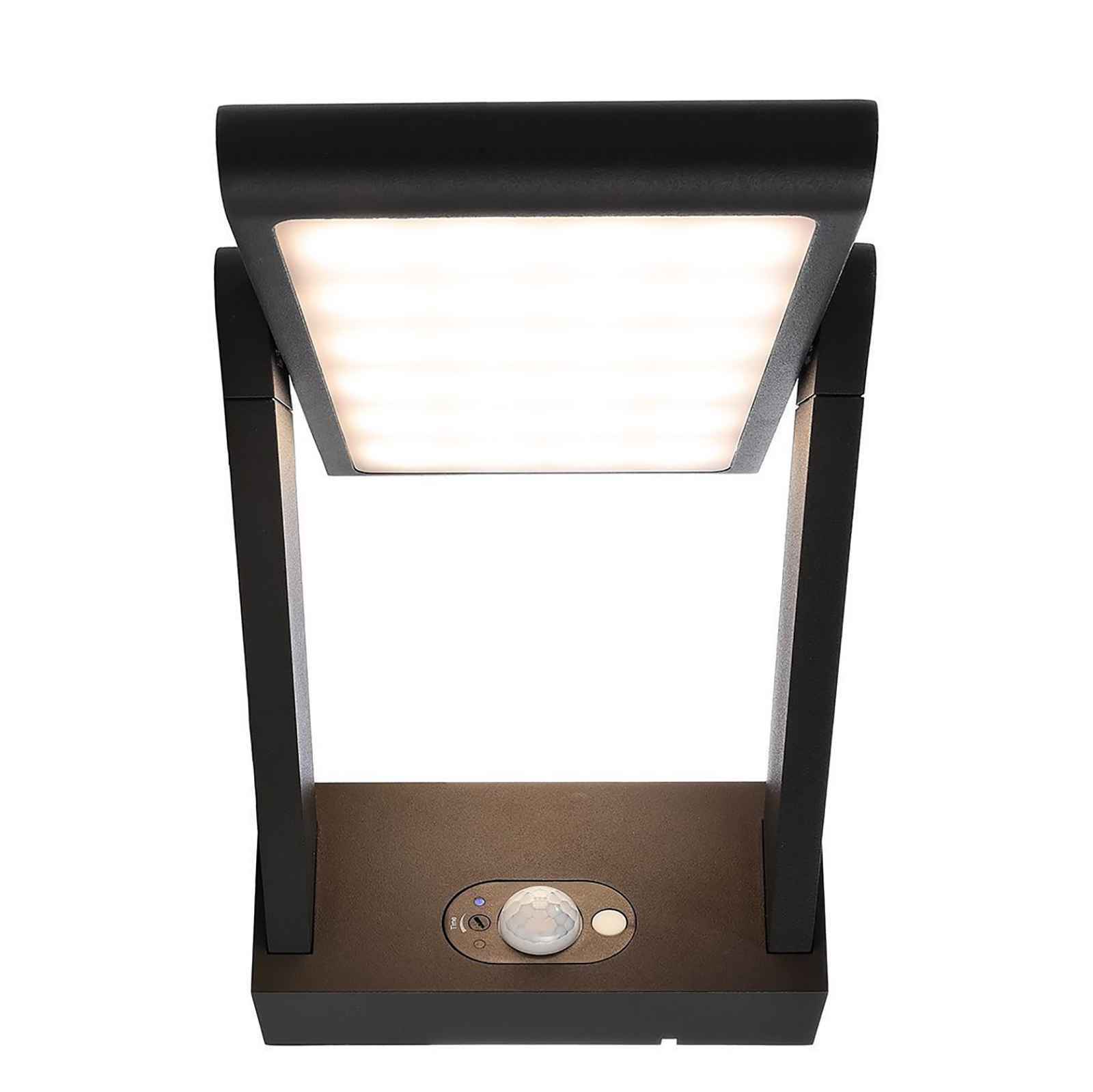 Applique solare a LED da design moderno adatto per installazioni a parete dotato di pannello solare ideale per esterno per illuminare terrazzi, balconi, ingressi, giardini, porticati. Questa lampada è dotata di diffusore orientabile fino a 180 gradi con LED integrati con potenza 1.60W. Realizzata in alluminio di colore grigio scuro ha un grado di protezione IP54 resistente alle intemperie e gli agenti atmosferici.