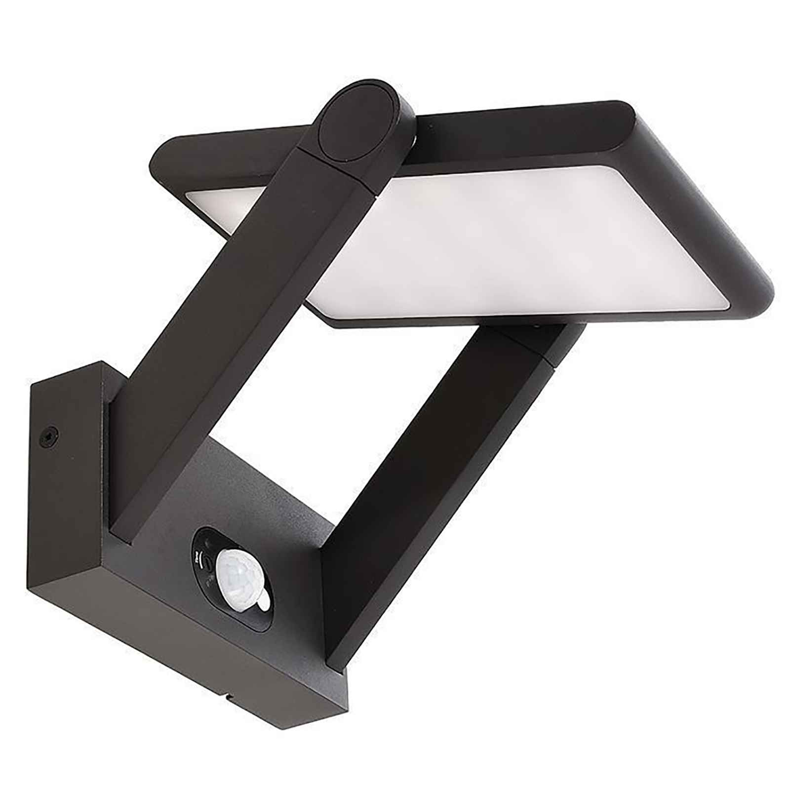 Applique solare a LED da design moderno adatto per installazioni a parete dotato di pannello solare ideale per esterno per illuminare terrazzi, balconi, ingressi, giardini, porticati. Questa lampada è dotata di diffusore orientabile fino a 180 gradi con LED integrati con potenza 1.60W. Realizzata in alluminio di colore grigio scuro ha un grado di protezione IP54 resistente alle intemperie e gli agenti atmosferici.