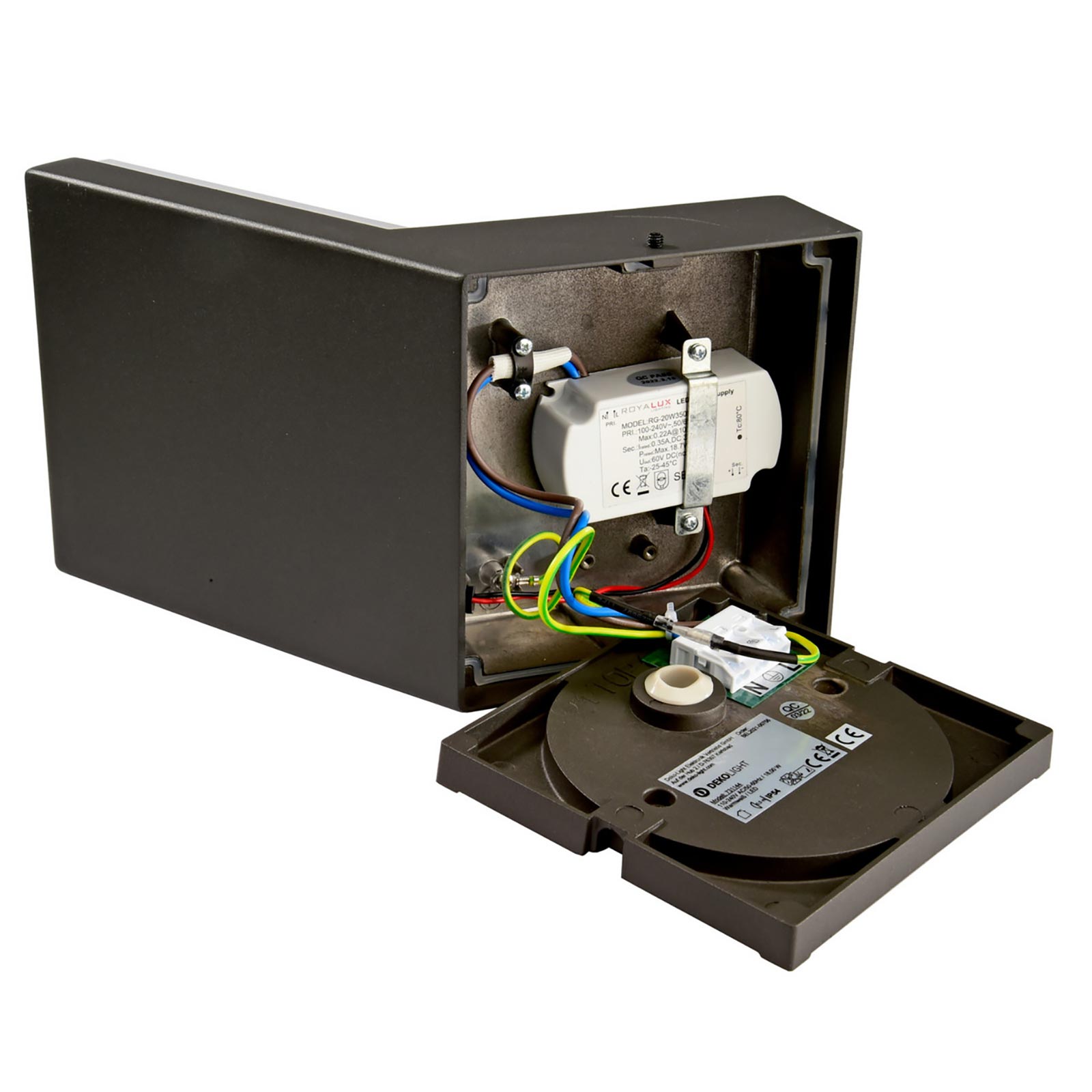Dimensioni applique: 140mm x 172mm x 219mm - Dimensioni base di fissaggio: 125mm x 135mm x 15mm