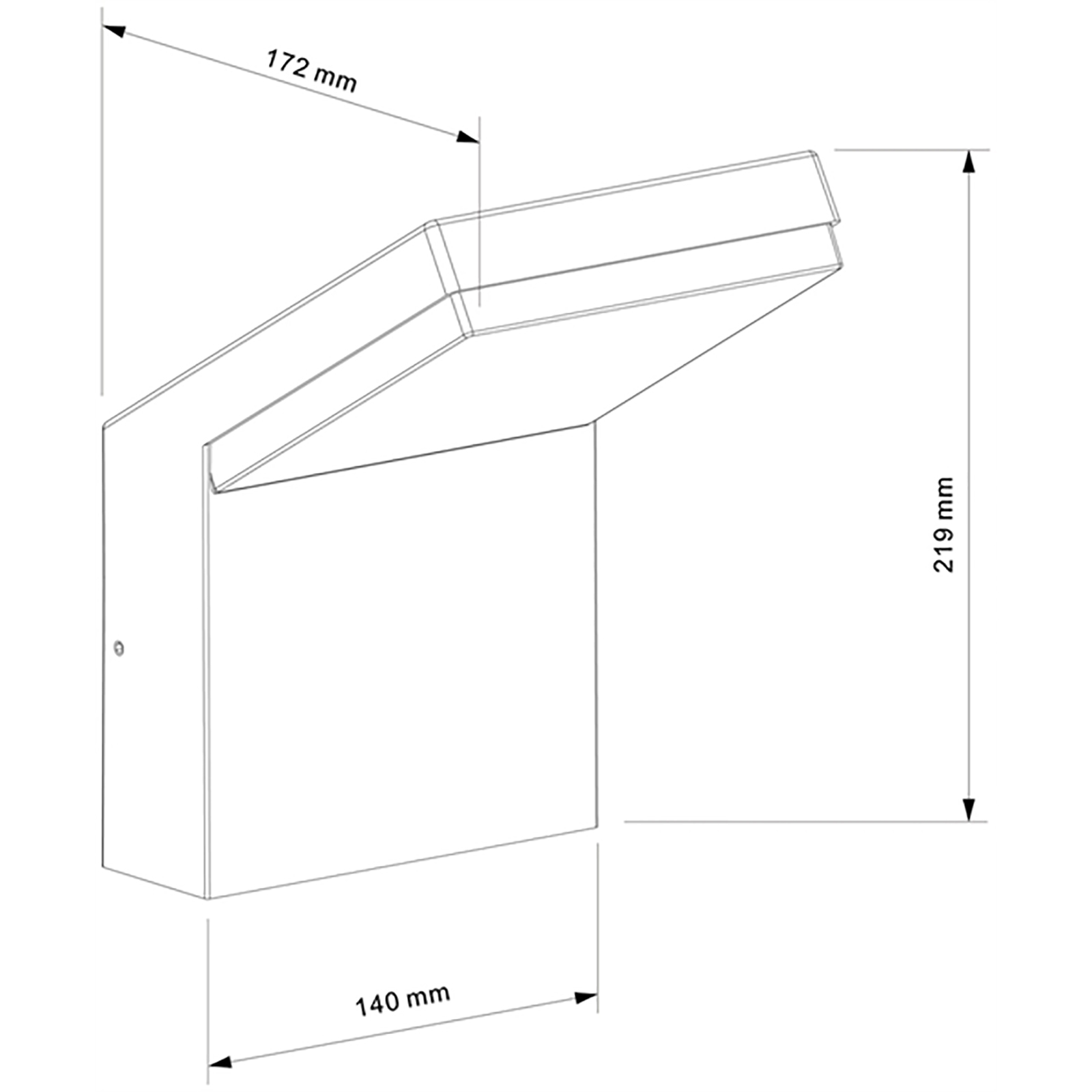 Dimensioni applique: 140mm x 172mm x 219mm - Dimensioni base di fissaggio: 125mm x 135mm x 15mm