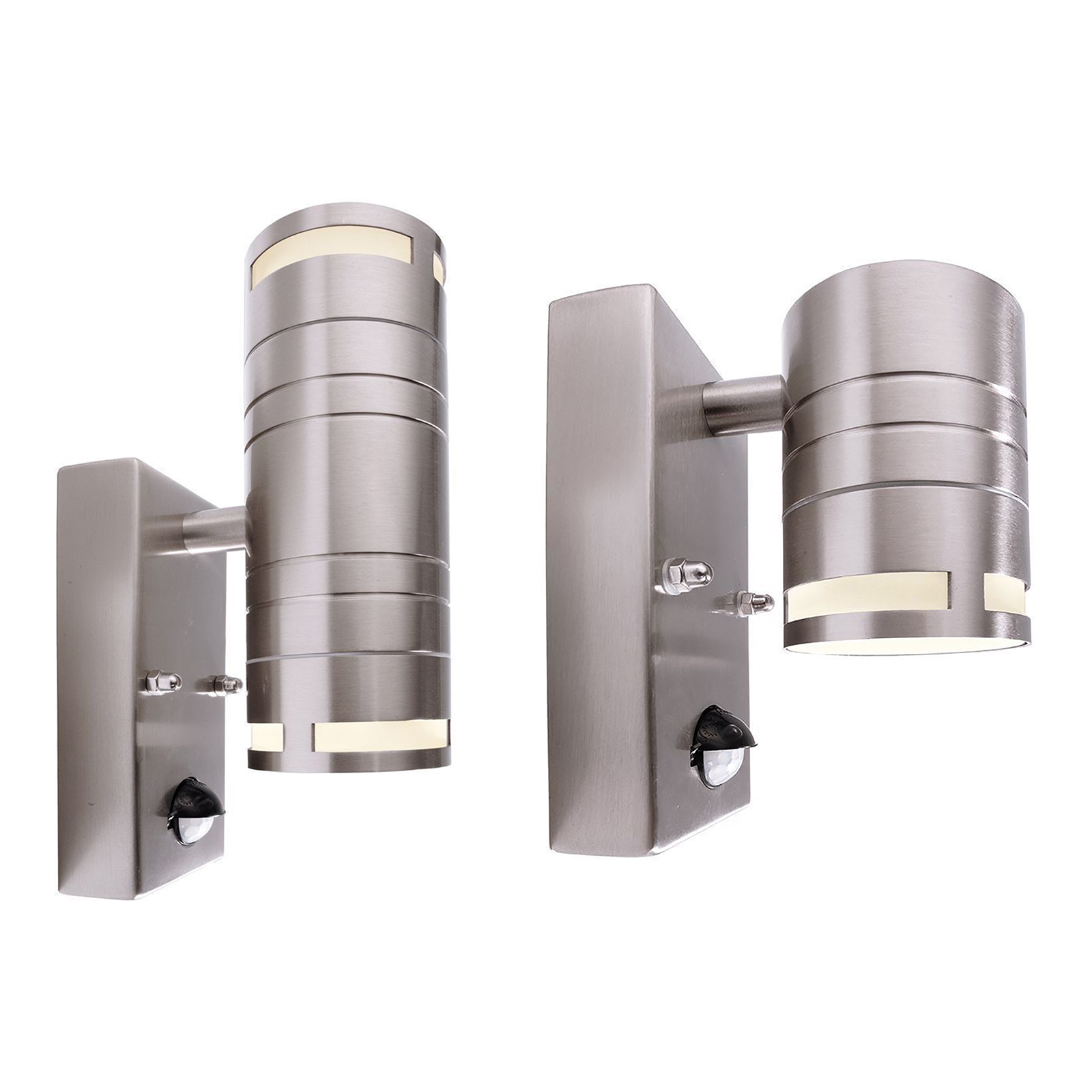 Zilly linea di applique GU10 in acciaio inox con sensore di movimento disponibili in 2 versioni con 1 e 2 diffusori adatti per uso esterno per l'illuminazione di giardini, in zone scure o lungo percorsi pedonali, all'esterno della propria abitazioni, per ingressi, all'esterno di negozi, balconi, terrazzi, aree condominiali ed in tutti quei luoghi dove non c'è possibilità d'installare un interruttore per accedere e spegnere la luce.