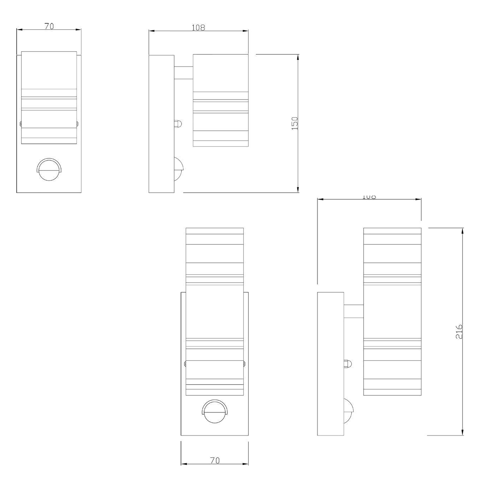 Dimensione applique 1 diffusore: 150mm x 108mm x 70mm - Dimensione applique 2 diffusori: 216mm x 108mm x 70mm,