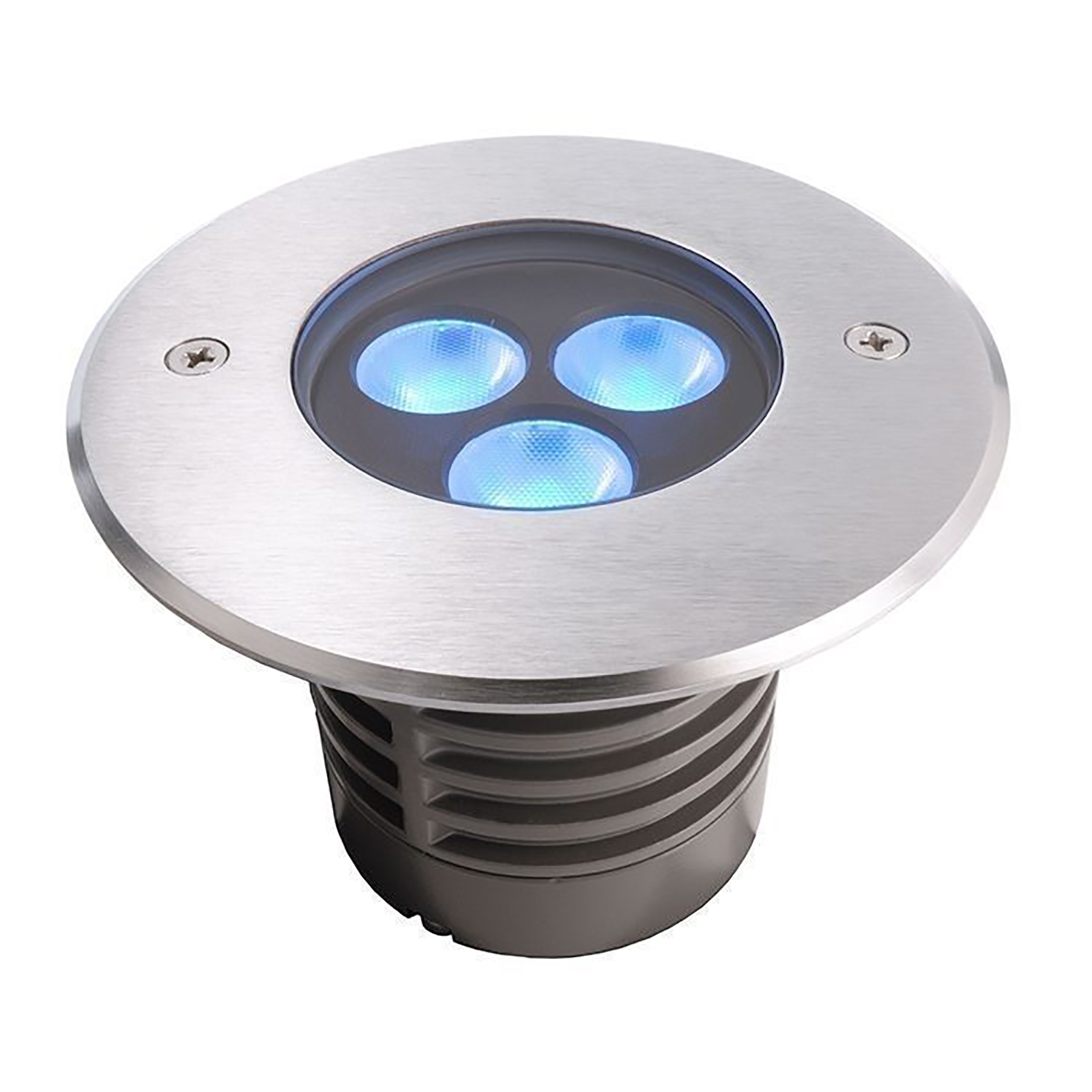 GROUND RECESSED LIGHT - Faretto LED calpestabile CARRABILE dimmerabile adatto per uso esterno dotato di 3 LED RGB multicolore con potenza 7.40W ideale per creare effetti di luce colorata in spazi esterni come segnapassi per percorsi pedonali, come luci di sicurezza in parcheggi, garage, all'esterno di giardini, per viali, sentieri, a bordo piscina, adatto anche come luce per segnalare gradini, scale.