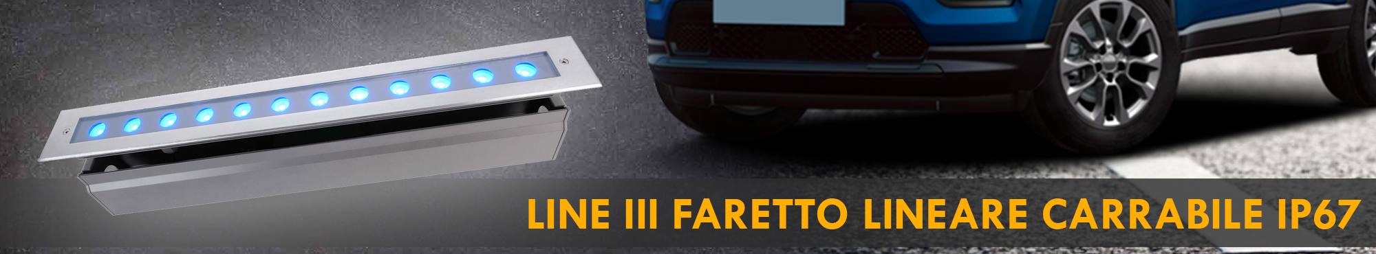 LINE V faretto LED barra CARRABILE calpestabile RGB multicolore adatta per uso esterno con grado di protezione IP67 realizzato con corpo in acciaio inox e contro cassa in pvc. Dotato di LED di ultima generazione a basso consumo energetico, monta 12 LED con potenza di 18W ed un'intensità luminosa di 340 lumen. Ideale per illuminare ambienti esterni adatto per l'incasso a pavimento, terreno, sabbia, prato, cemento.