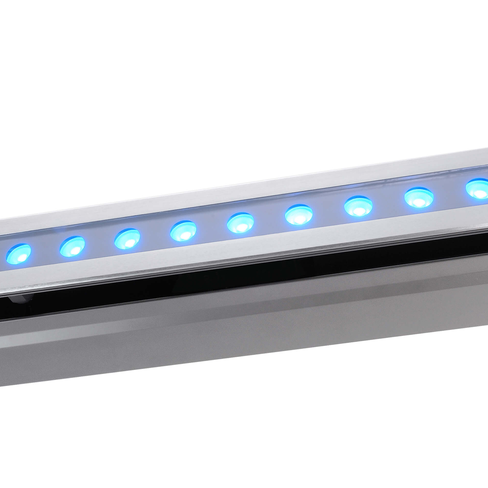LINE V faretto LED barra CARRABILE calpestabile RGB multicolore adatta per uso esterno con grado di protezione IP67 realizzato con corpo in acciaio inox e contro cassa in pvc. Dotato di LED di ultima generazione a basso consumo energetico, monta 12 LED con potenza di 18W ed un'intensità luminosa di 340 lumen. Ideale per illuminare ambienti esterni adatto per l'incasso a pavimento, terreno, sabbia, prato, cemento.