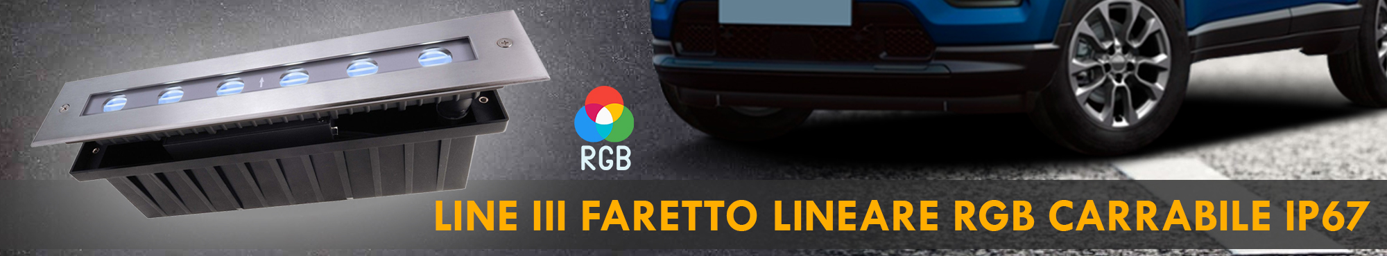LINE III faretto CARRABILE dotato di LED integrati RGB con potenza: 17W adatto per uso esterno realizzato in acciaio inox con ottica asimmetrica ideale per illuminare e decorare facciate, abitazioni, per la decorazione del giardino, per illuminare alberi, piante, statue, fontane. Viene fornito completo di contro cassa in pvc inclusa e cavo alimentazione da 0.5m.