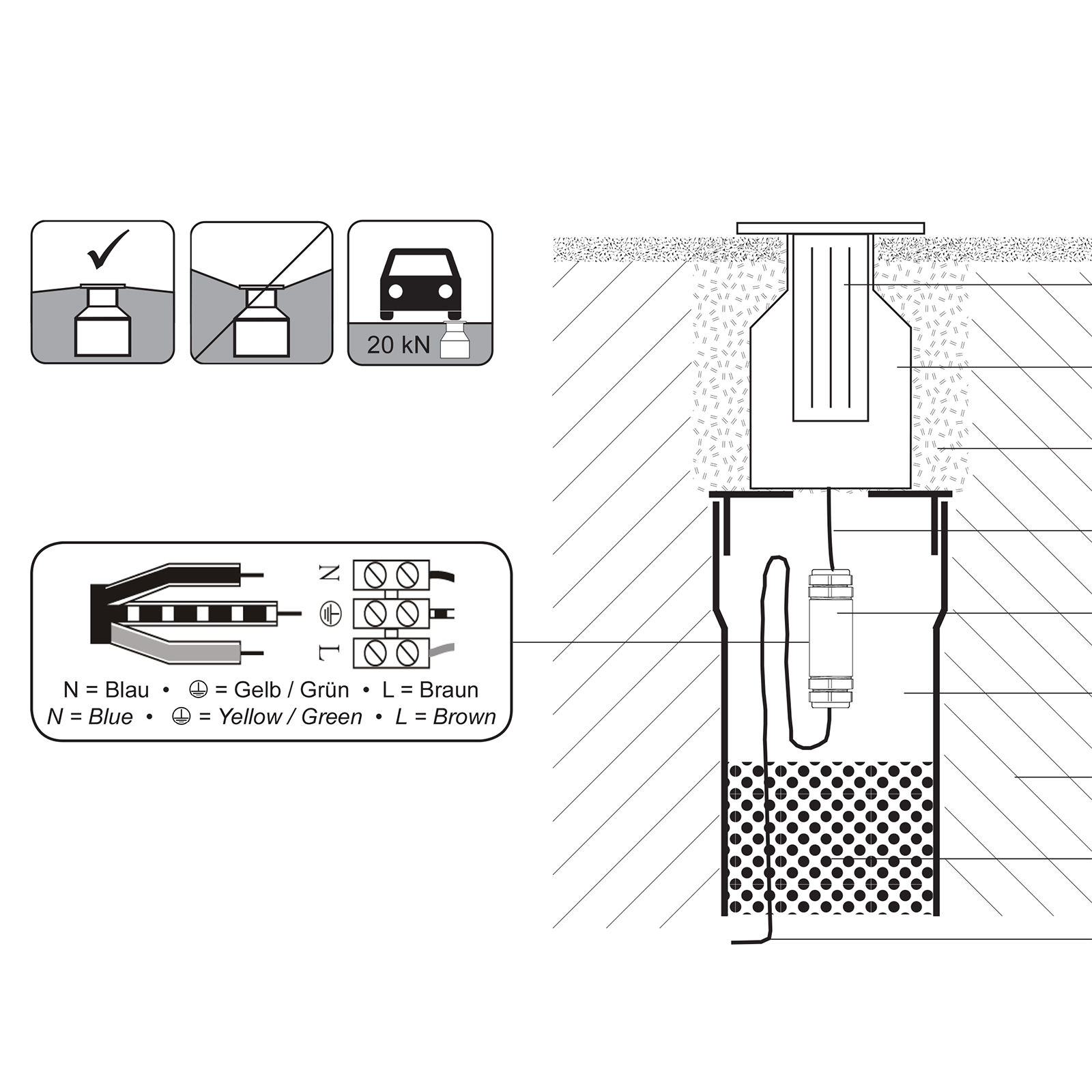 Non necessita di alimenta, si alimenta a 230V e rappresenta una soluzione rapida e vantaggiosa per l'illuminazione esterna e l'arredo di viali, giardini, stabilimenti balneari, parchi, bordo piscina, sentieri. Grazie all'elevata qualità dei materiali e la tecnologia LED moderna questo faretto ha una durata maggiore nel tempo.