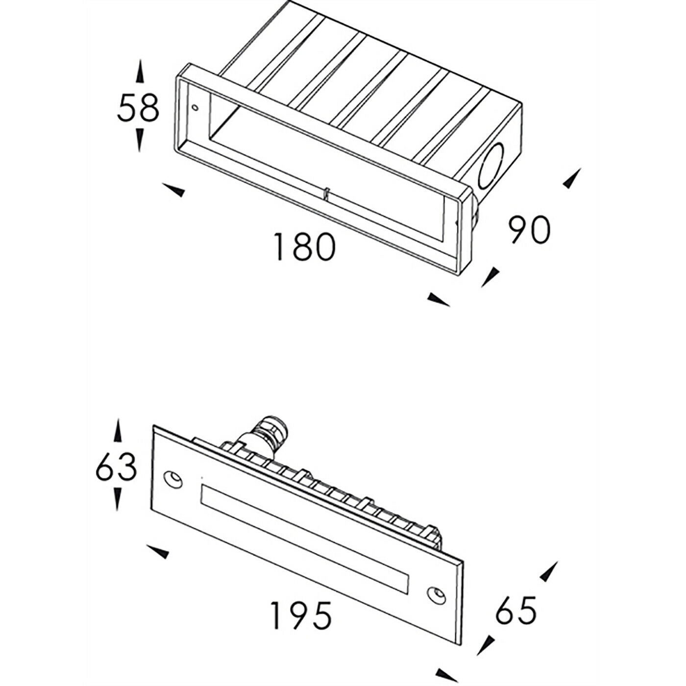Dimensioni del faretto: 195mm x 63mm x 65mm - Dimensioni del foro per l'incasso 180mm x 58mm