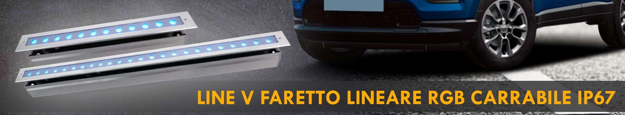 LINE VI faretto LED barra CARRABILE da 1 metro calpestabile RGB multicolore adatta per uso esterno con grado di protezione IP67 realizzato con corpo in acciaio inox e contro cassa in pvc. Dotato di LED di ultima generazione a basso consumo energetico, monta 24 LED con potenza di 42.80W ed un'intensità luminosa di 700 lumen. Ideale per illuminare ambienti esterni adatto per l'incasso a pavimento, terreno, sabbia, prato, cemento.