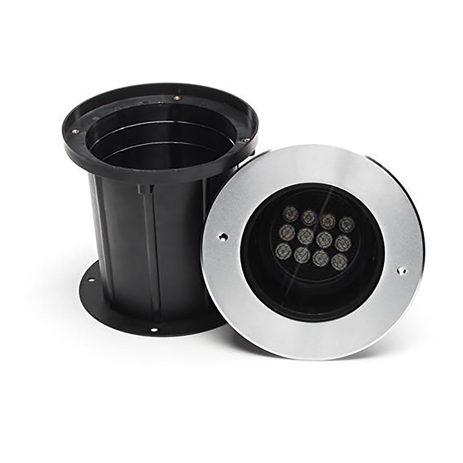 Realizzato con corpo in acciaio inox di alta qualità verniciato a polveri epossidiche resistente alle intemperie e gli agenti atmosferici. Ha un grado di protezione IP67. Viene fornito completo di contro cassa in pvc e cavo alimentazione da 0.5 metro. Può essere facilmente installato in pavimenti, terreno, cemento, marciapiedi, pareti, muri.